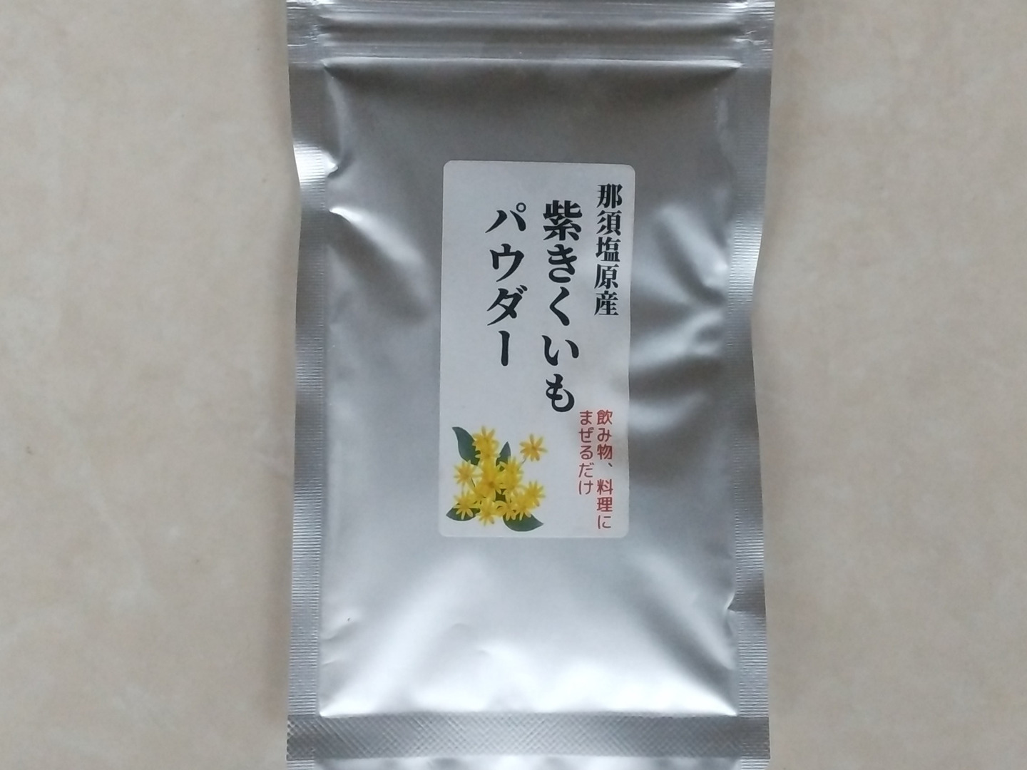 栽培している紫キクイモをスライスし、干してパウダーにしました。