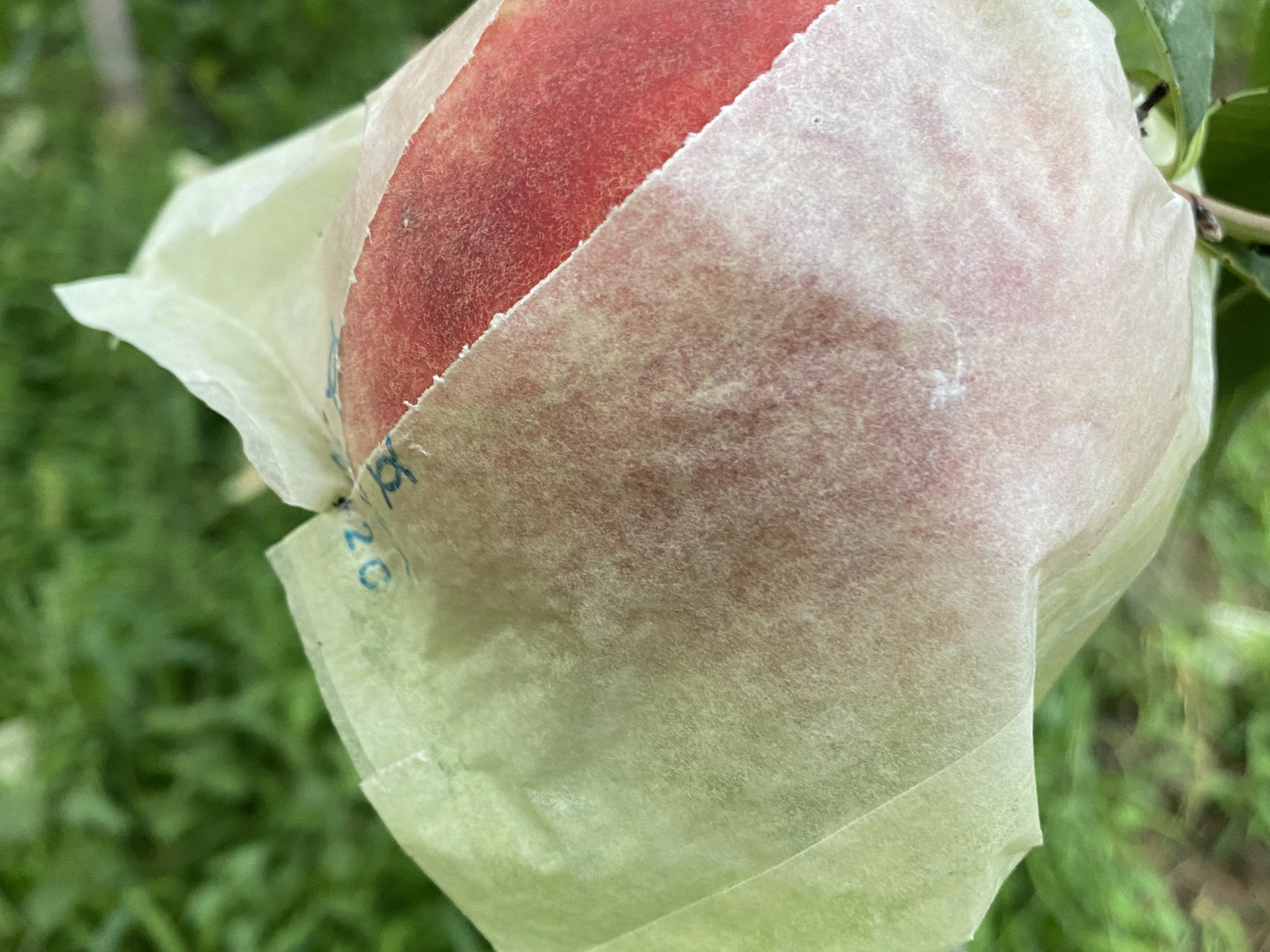 陽の光が入りやすいうすい袋をかけて栽培していますので安全です。