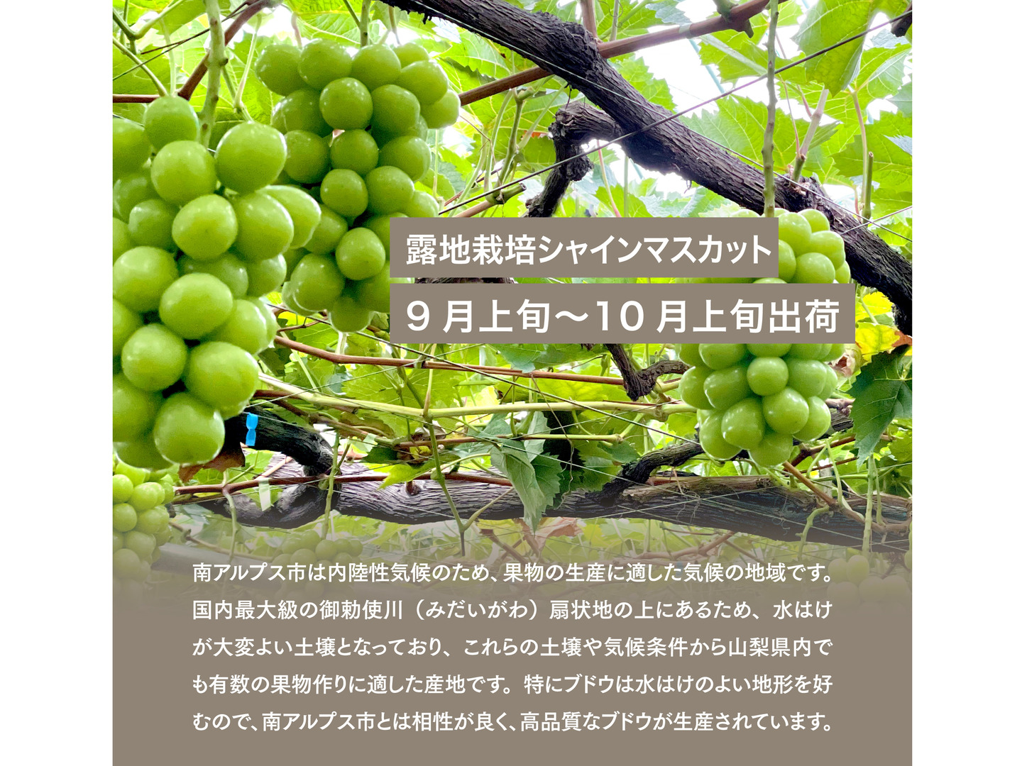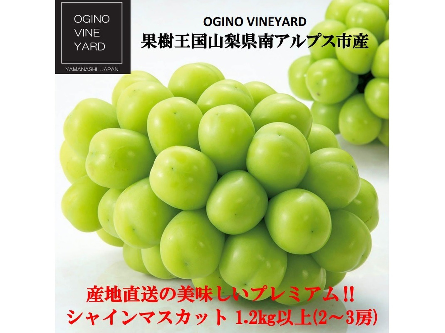 果樹王国山梨県産 最高級シャインマスカット 1.2㎏以上 2~3房