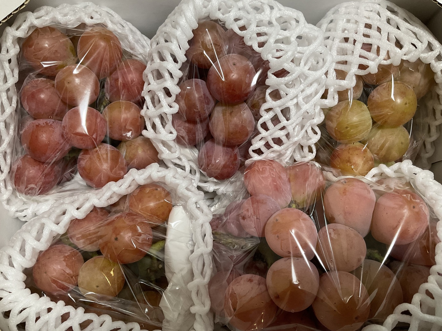 色づきがまばらな物、緑色の物が入る事が有ります。カット房、穴あき、傷、裂果跡、小さい房、不揃い房がカット房が入ります。贈答品には向きません。家庭用です。