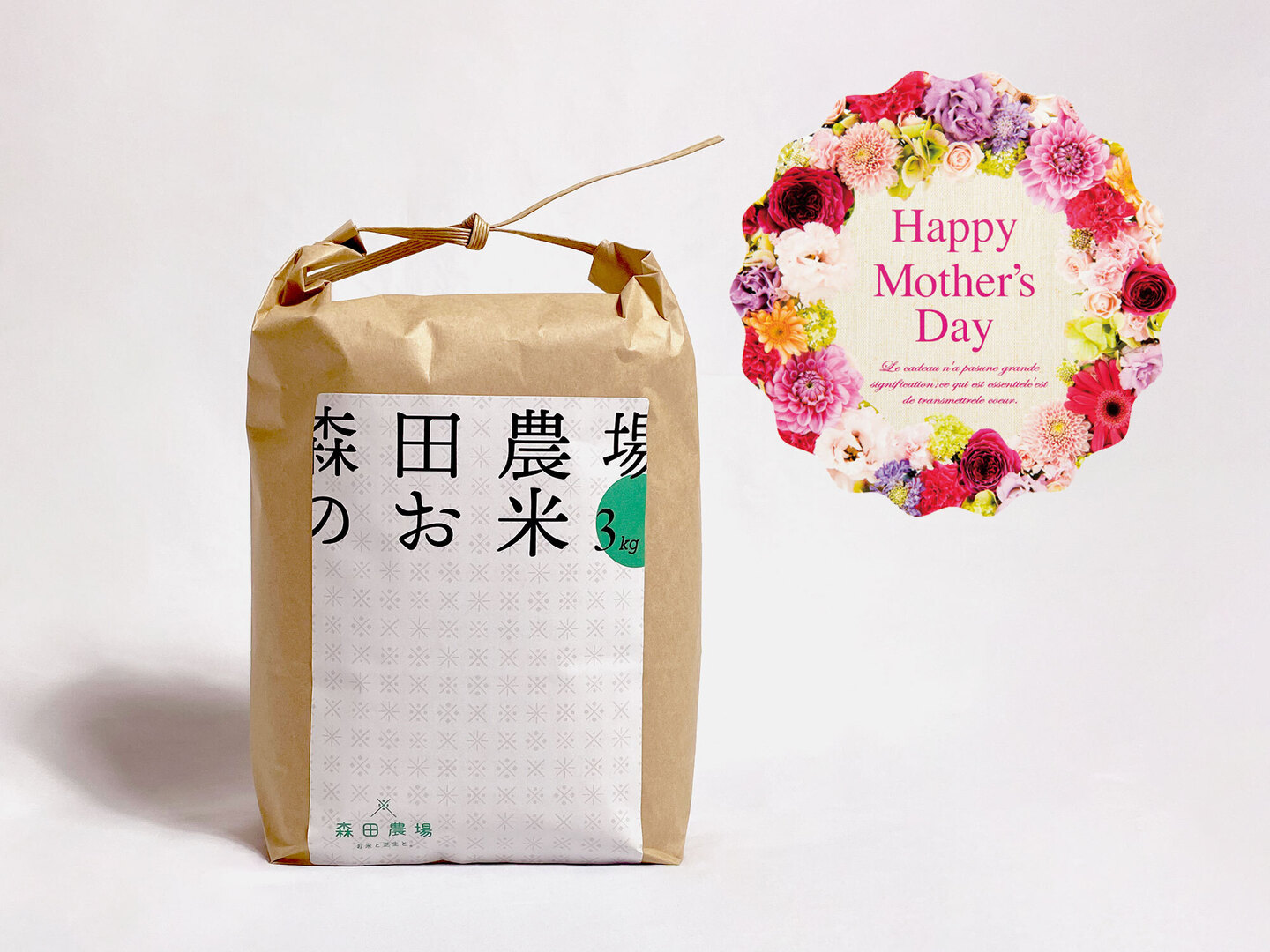 森田農場自慢のお米、3kgサイズ。