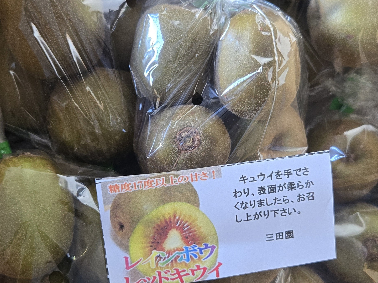 普通のキウイの糖度が10度~16度に対し、レインボーレッドキウイは20度ととても甘いです。酸味が少ないためお子様にも人気な品です。また完熟すると真ん中の部分が赤くグラデーションになるのでスイーツ作りにも華やかさを足してくれます!