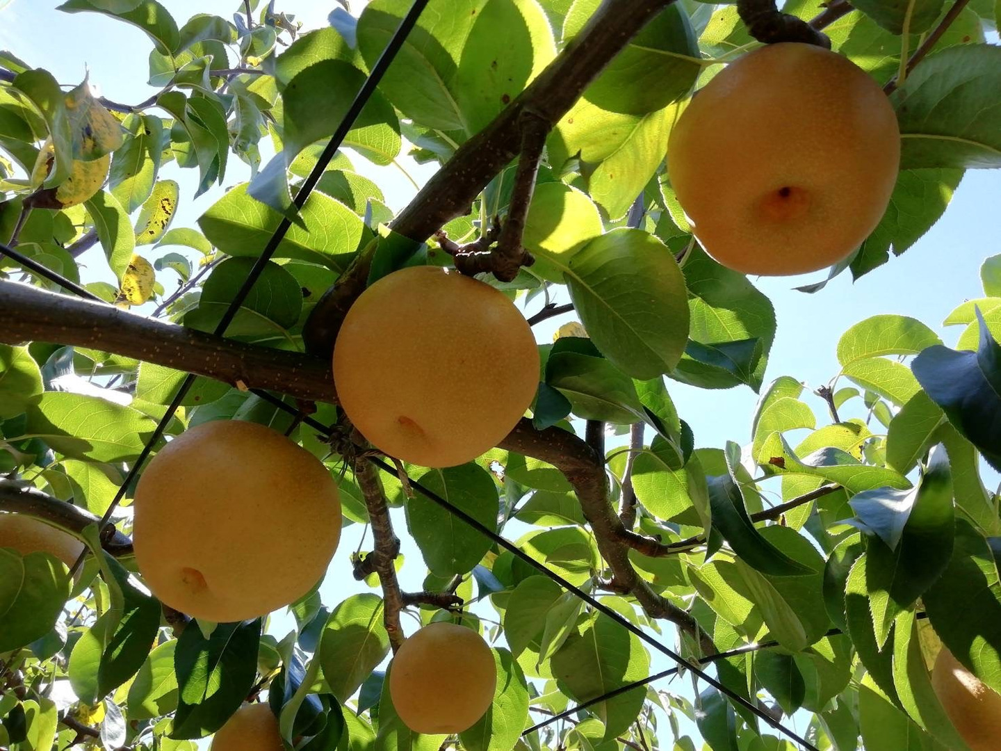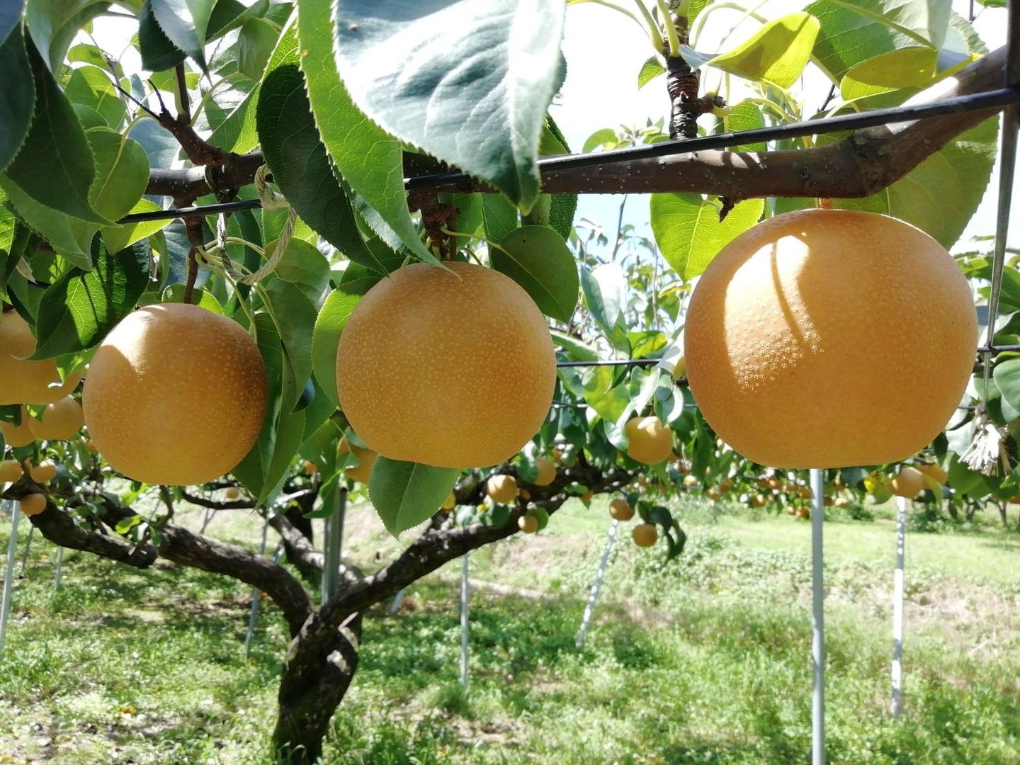 スーパーに並ぶ梨のほとんどは、日持ちさせるために実が熟す前の状態で収穫されます。しかし、梨は追熟しない果実なので、時間がたっても甘くなりません。いわざき農園では、樹上で完熟させ、熟度を見極めて収穫します。皆様には「食べごろ」の梨をお届けします。