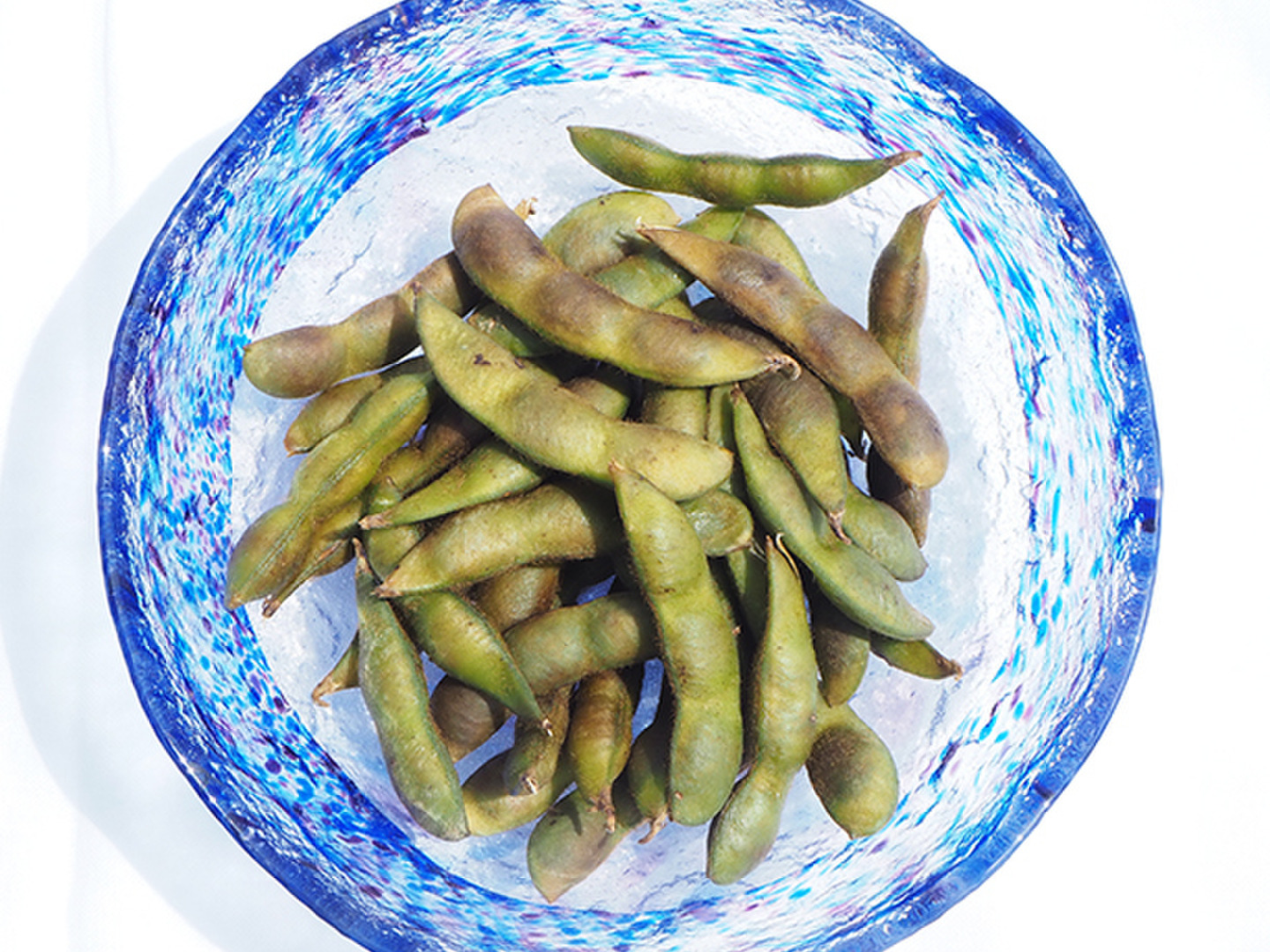 さらに美味しくいただくには、事前に枝豆300gに対し、塩もみ(おおさじ1)します。ざるに移して軽く水洗いし、ペーパータオルでふき冷凍。
