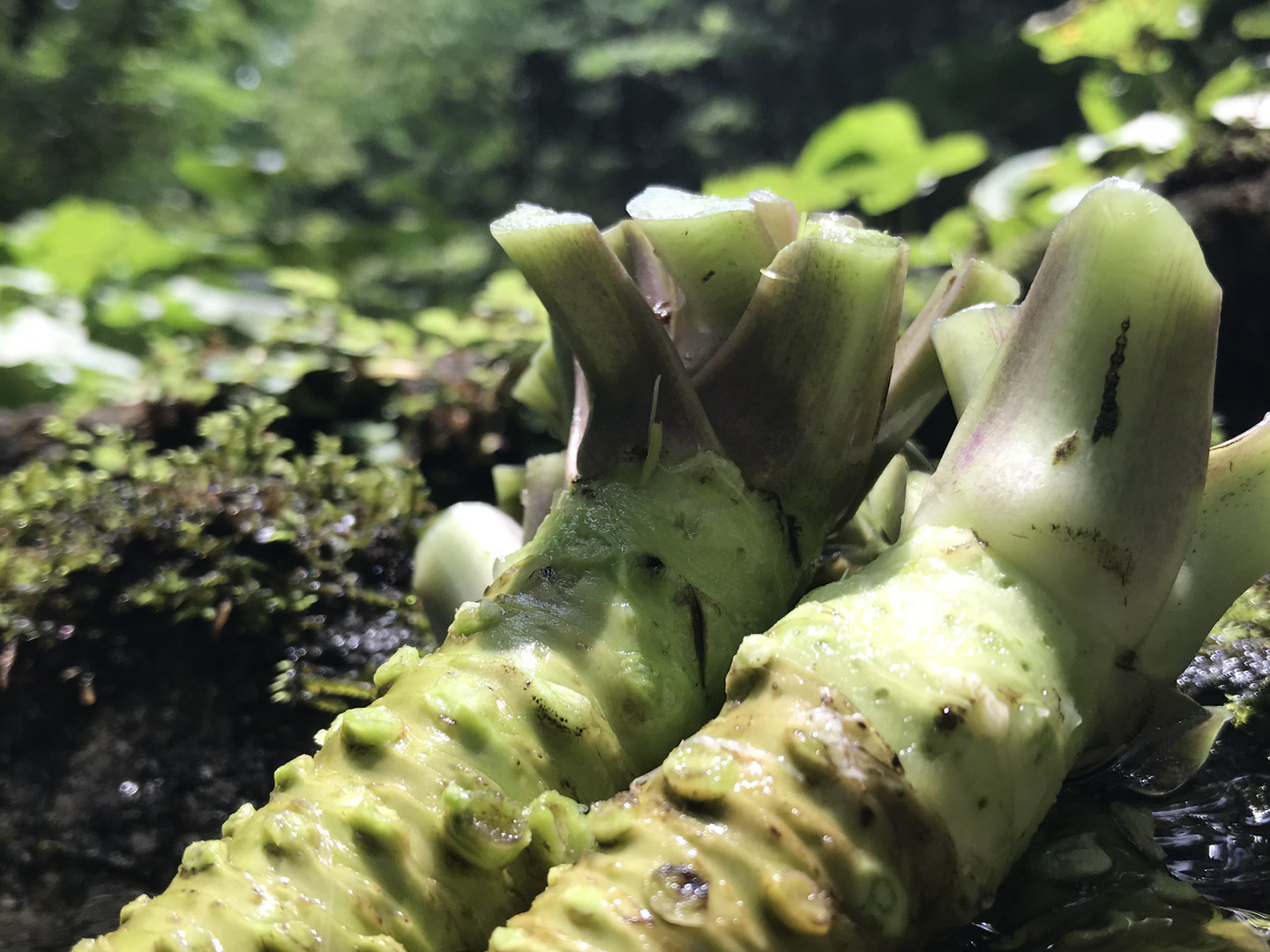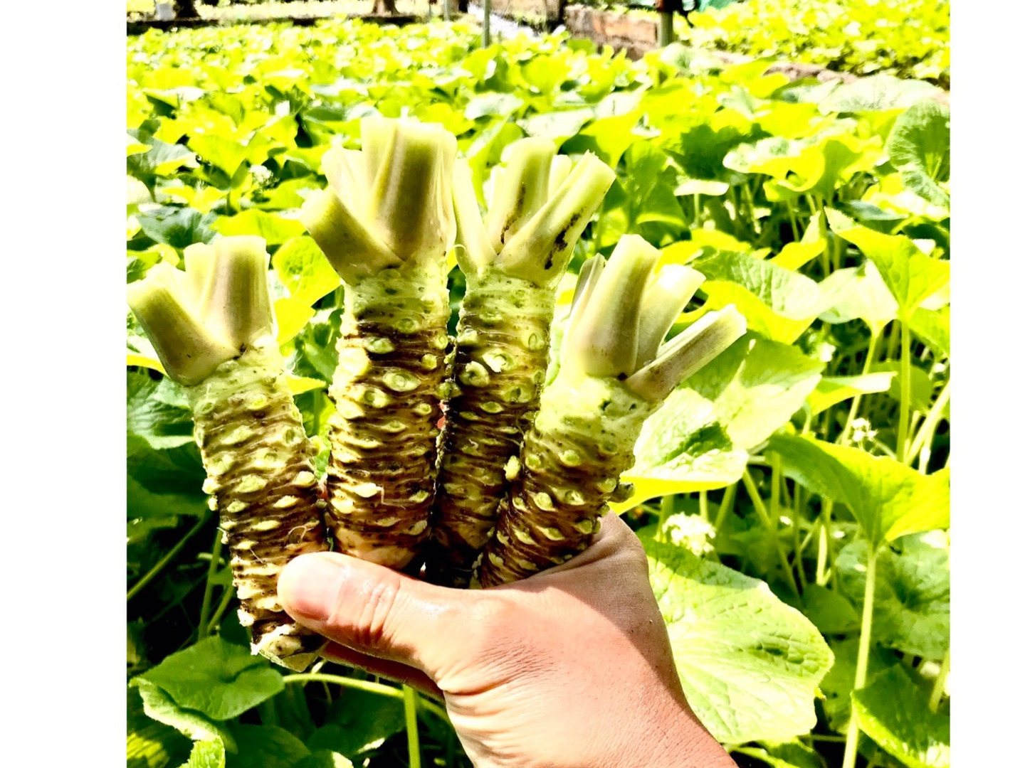 天城山麓の澄んだ湧き水が流れるワサビ田で大切に育てました