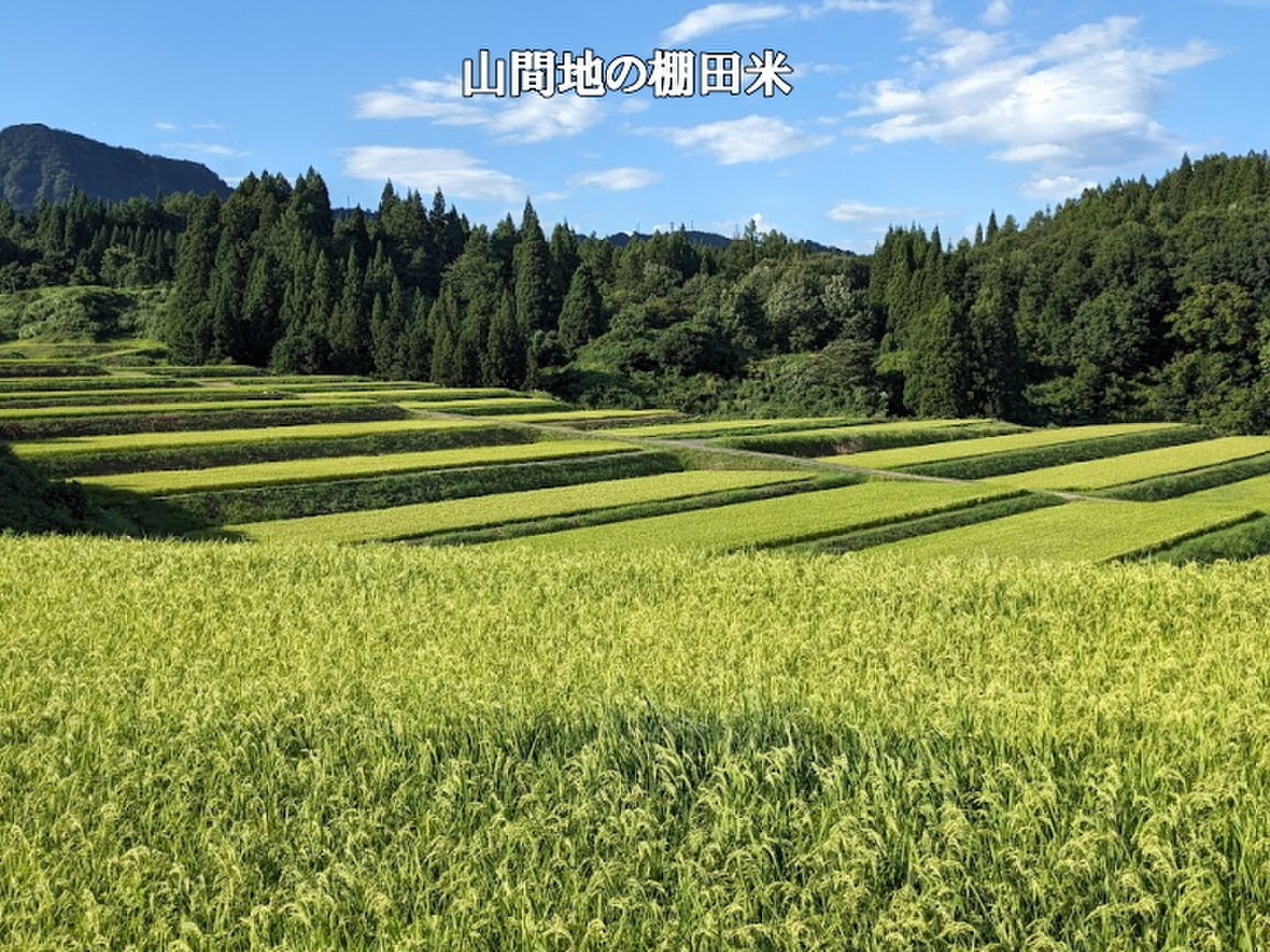 - 山間地の棚田米は、令和5年の猛暑の影響を受けず美味しく育ちました。