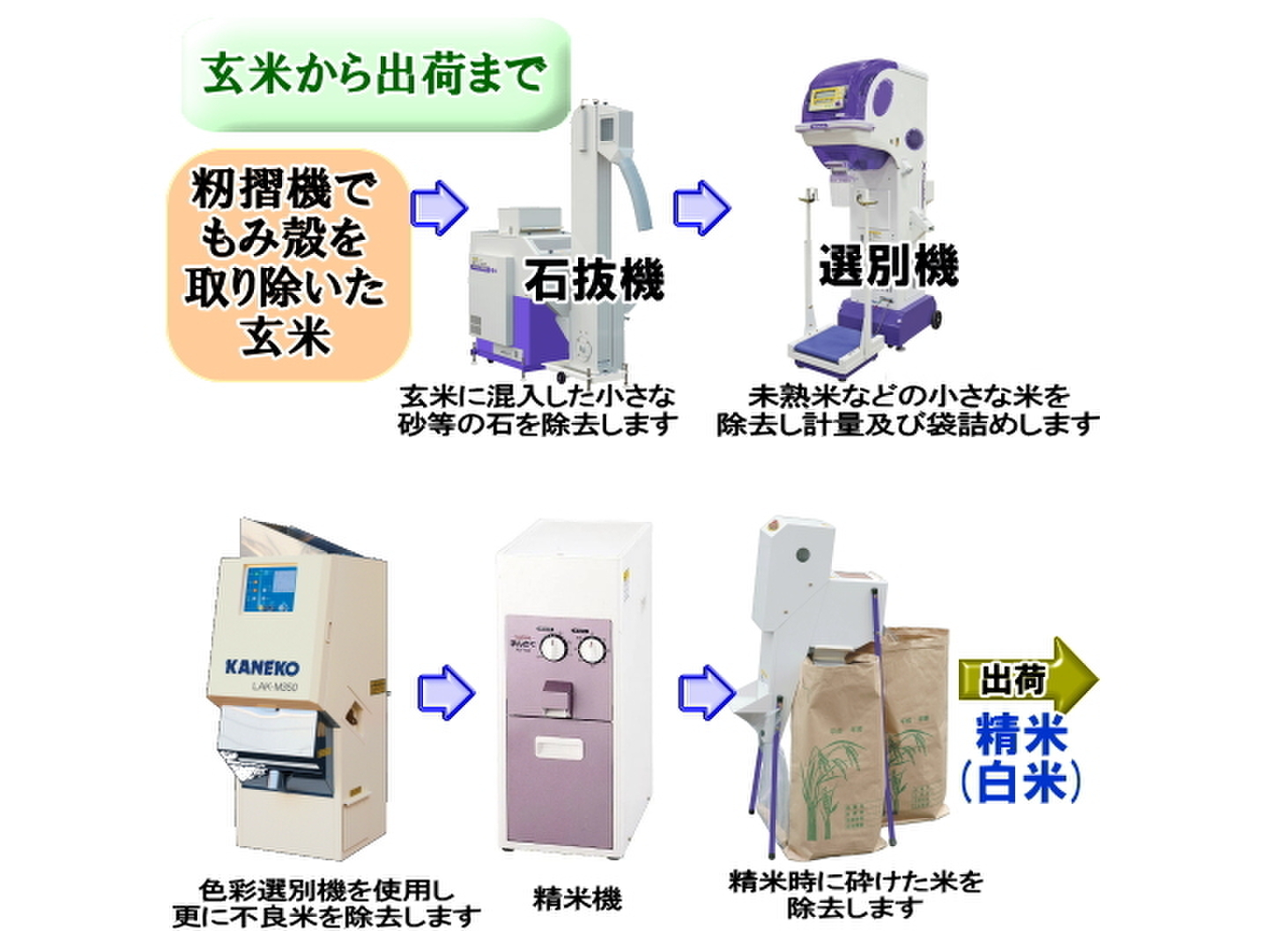 - 3 南魚沼産しおざわコシヒカリ乾式無洗米出荷までの作業工程。