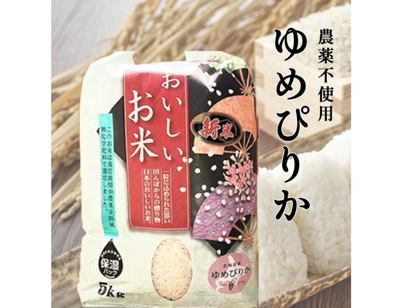 ※写真はゆめぴりか除草剤1回使用のみのラベルになっていますがお送りする際は化学肥料、農薬不使用でのラベルになります。