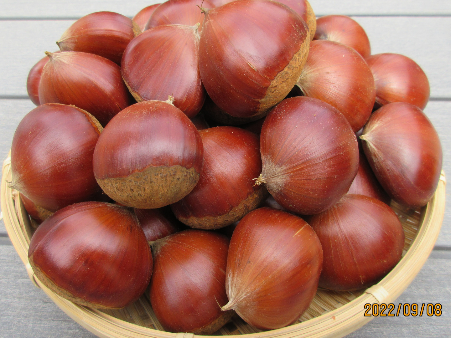 果肉色は鮮やかな黄色のため、甘露煮やペーストに等に適したとっても美味しい栗です。今年は例年に比べとっても大きく育ちました。