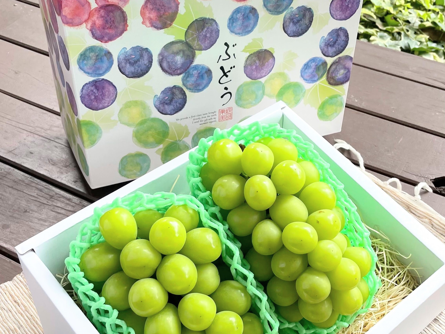 シャインマスカットは、種がなく皮ごと食べられ、サクッとした食感、華やかで爽やかなマスカット香、芳醇な甘みが特徴のぶどうです。