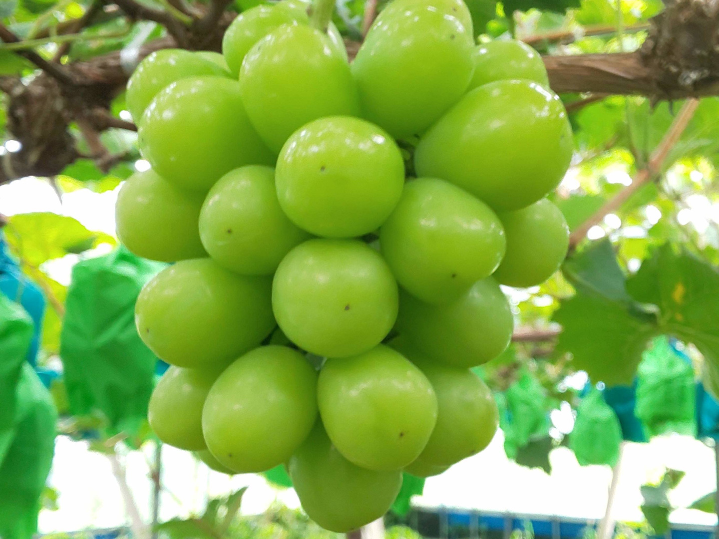 *シャインマスカット、ピオーネ共に、種なし処理をしていますが