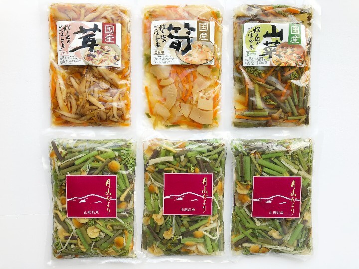 国産天然山菜 炊込みご飯の素3種& 山菜ミックス 水煮3袋