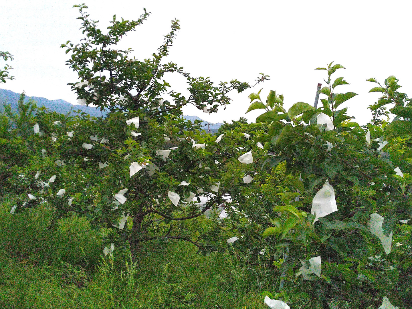 ・生産物の安全性だけでなく環境への負荷も考え、農薬を極力減らし、化学肥料は使用していません。虫から守るために一個一個袋を掛けます。