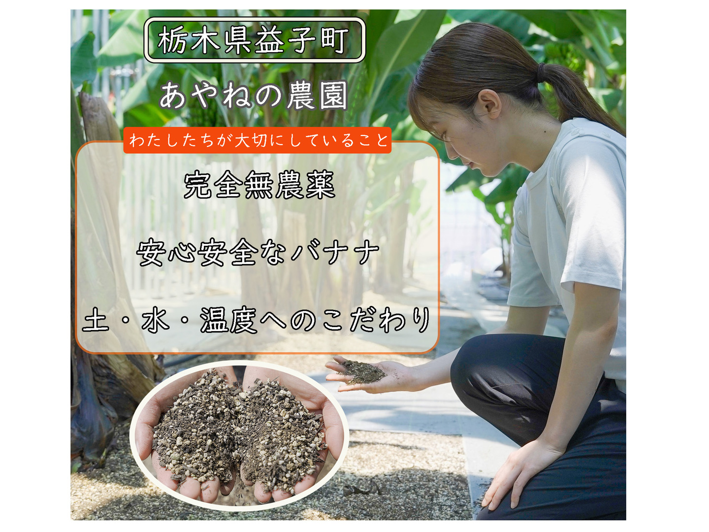 あやね 栃木県芳賀郡益子町 2いいね 生産者のこだわり 1 バナナ 濃厚で糖度の高い希少な品種 2 一般的なバナナの1.5倍以上の大きさ 3 農薬不使用で安心安全!! 4 完熟パイナップル 私たちについて私たちについて栃木県 芳賀郡益子町あやね創業:2019年10月はじめまして!焼き物のまち 栃木県益子町。ゆたかな自然を持つ里山に流れる懐かしく、ゆったりとした時間。焼き物づくりにも負けないこだわりを持って日本国内ではめずらしい皮まで食べられる農薬不使用のバナナや完熟でお届けするバナナを育てています。是非一度ご賞味ください。私たちのこだわりバナナ 濃厚で糖度の高い希少な品種国内での生産は非常に珍しい「グロミシェル」という品種のバナナです。花屋かな香りと、ねっとりした濃厚な味わい。糖度が非常に高く一般的なバナナが15度程度にも関わらず、22度~25度の贅沢な甘味をお楽しみいただけます。1いいね!いいね!一般的なバナナの1.5倍以上の大きさ一般的なバナナが1本180~200gの中、弊園のバナナは1本300g~大きい物で500gにもなる贅沢な物となります。1いいね!いいね!農薬不使用で安心安全!!バナナ・パイナップルの生育期間は、農薬を使わずに栽培しておりますので、安心してお召し上がりいただけます。0いいね!いいね!完熟パイナップル過熟寸前まで熟成をして出荷しています。本土で栽培しているからこそ、パイナップルの甘味と香りを最大限引き出したものをお届けできています。0いいね!いいね! ログイン後にフォローできます