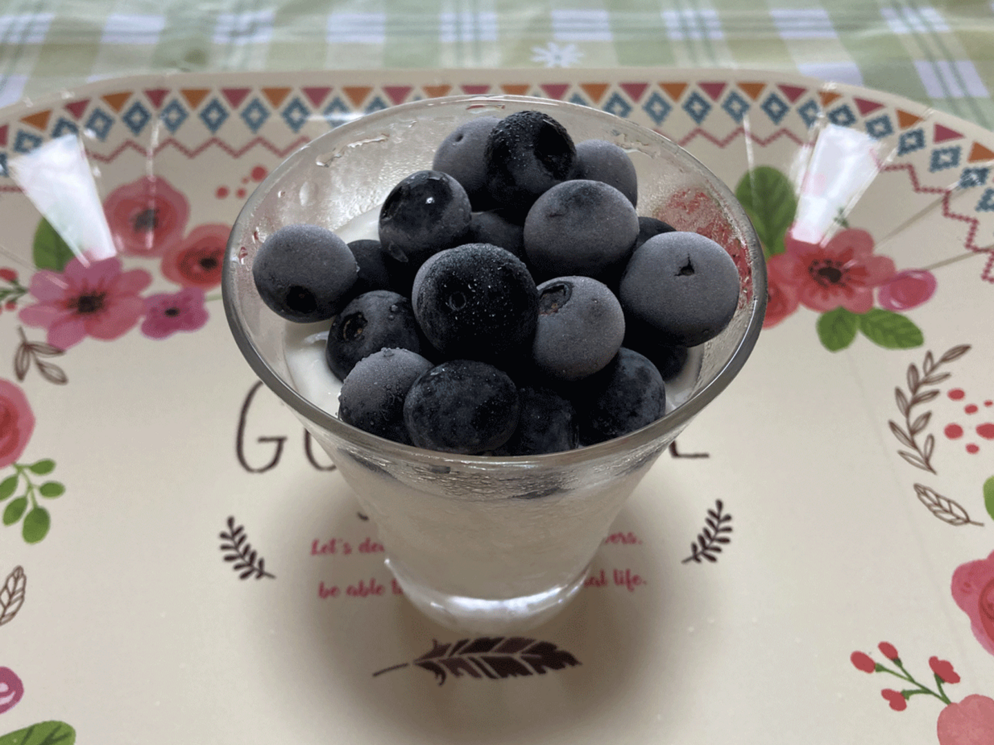 ブルーベリーは冷凍すると栄養価が高まります。目に良いだけでなく、お肌や血管の代謝に欠かせないビタミンCやメタボなどの生活習慣病の予防にも効果がある栄養素アントシニアンが多く含まれています。シャーベット感覚で美味しくいただきながら健康にも良い、一石二鳥なオススメです。