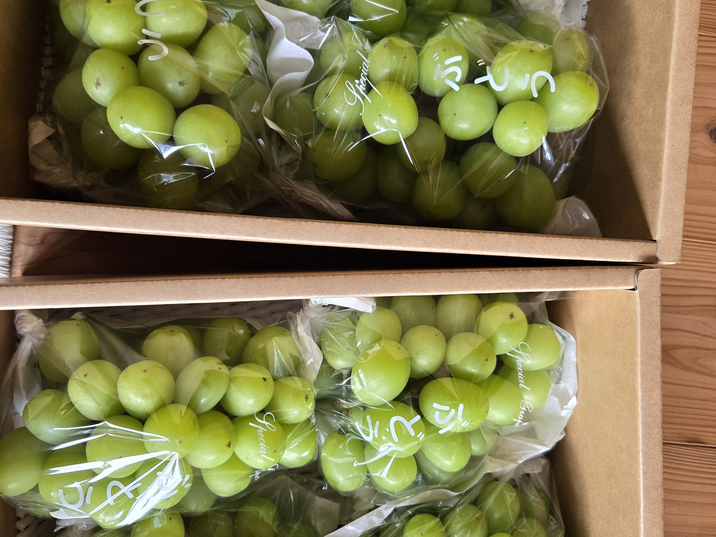 甘さが特徴のシャインマスカットですが、今年はどちらかというとすっきりめです。今年は気温の高い日が続き、一気に熟しました。