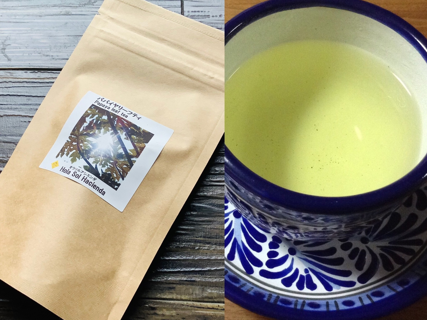 数々の天候不順などの試練にたえて育ち、太陽の恵みを沢山浴びた土壌栽培・パパイヤの若葉のみで作ったお茶です。