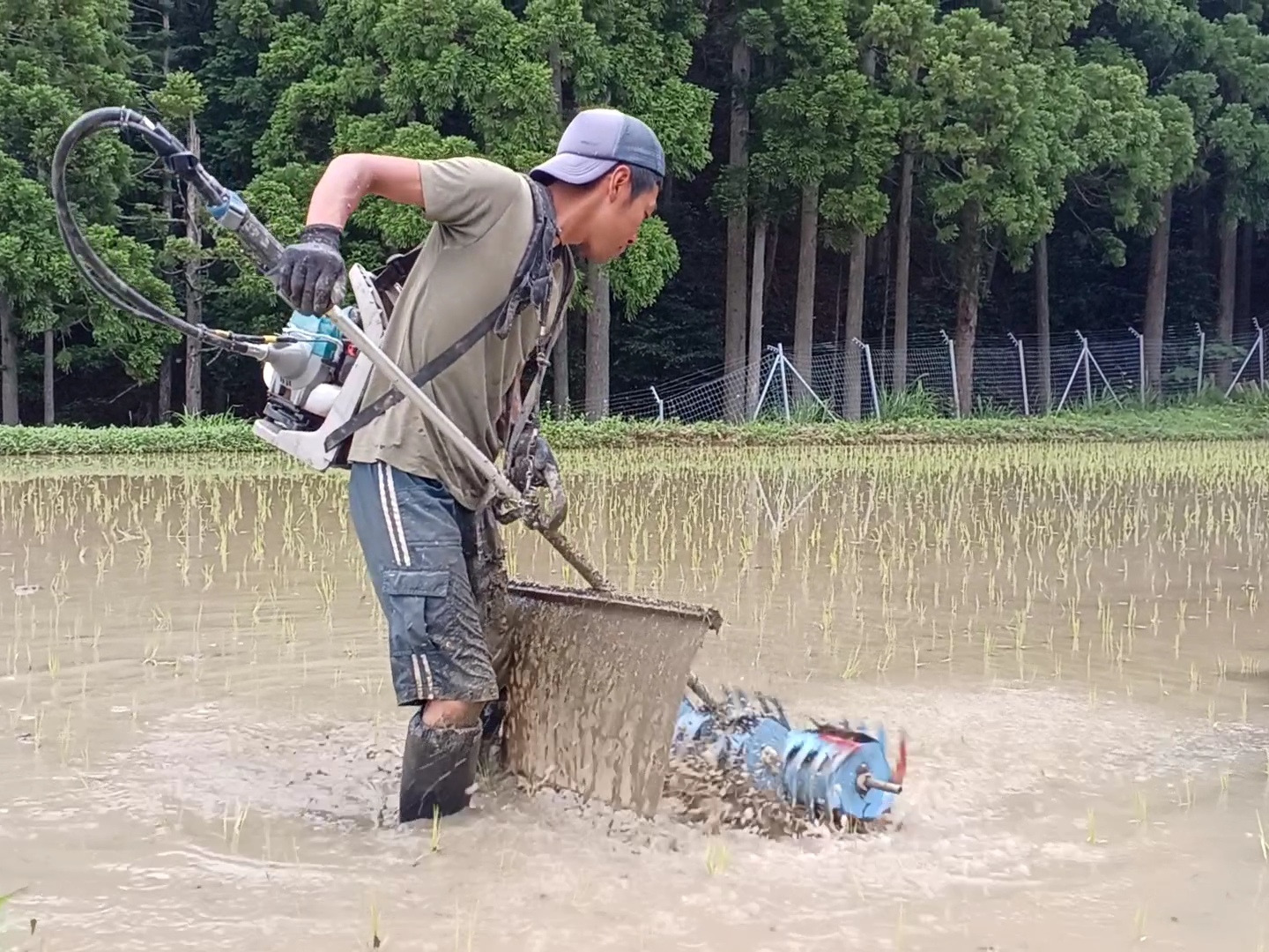 小さな雑草の芽を土ごと起こして成長を抑え、また芽が出たら起こし…を、すべての田んぼで3回繰り返し稲の成長を助けます。