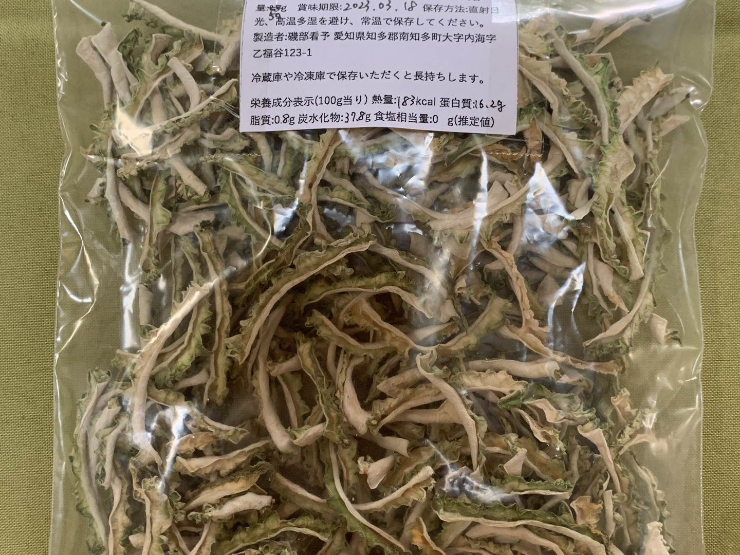 干しゴーヤーの突起で袋に小さな穴が開くこともございます。