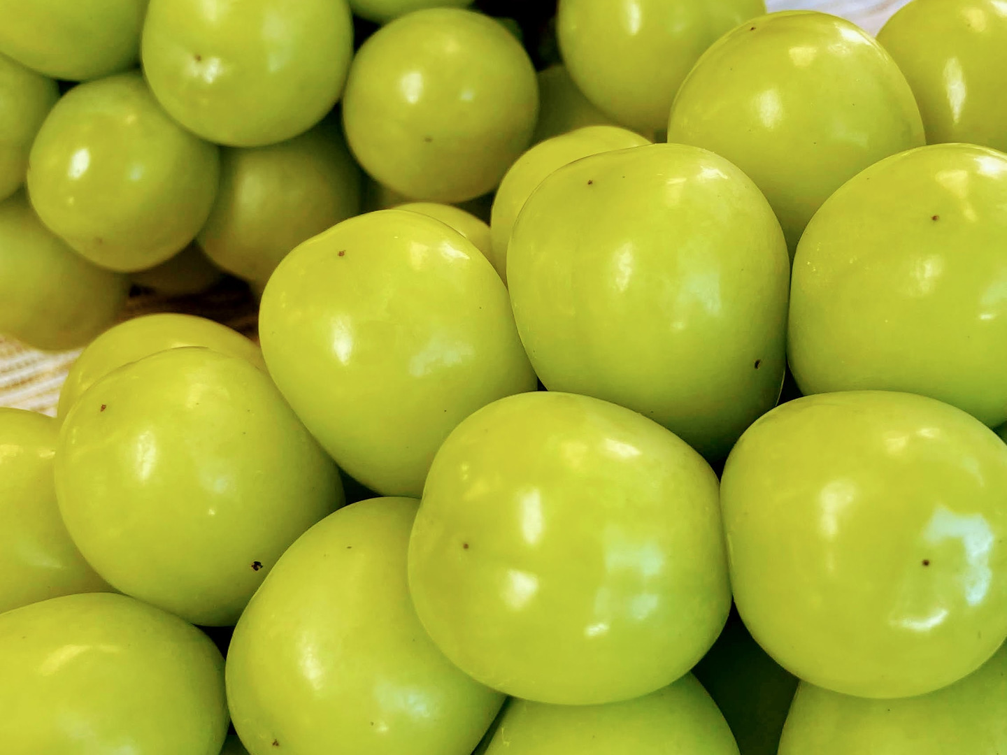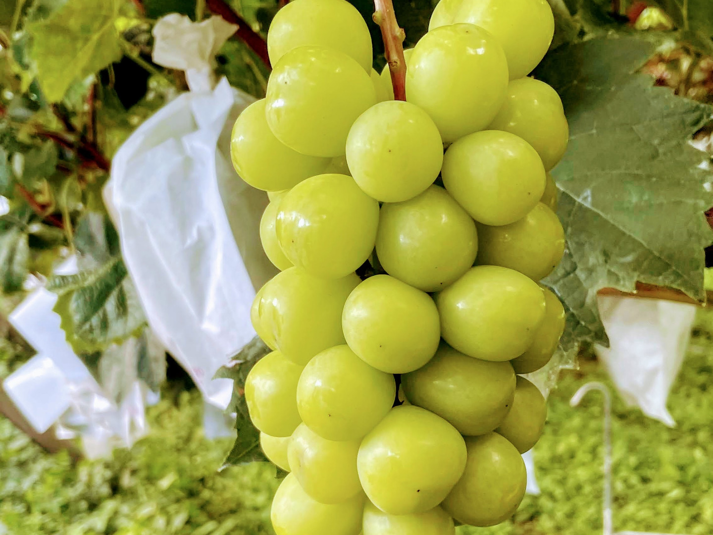 十分に甘みが乗り、マスカットの華やかで爽やかな香り、芳醇でパリッとした食感を味わえるぶどうです。皮ごと食べられます。
