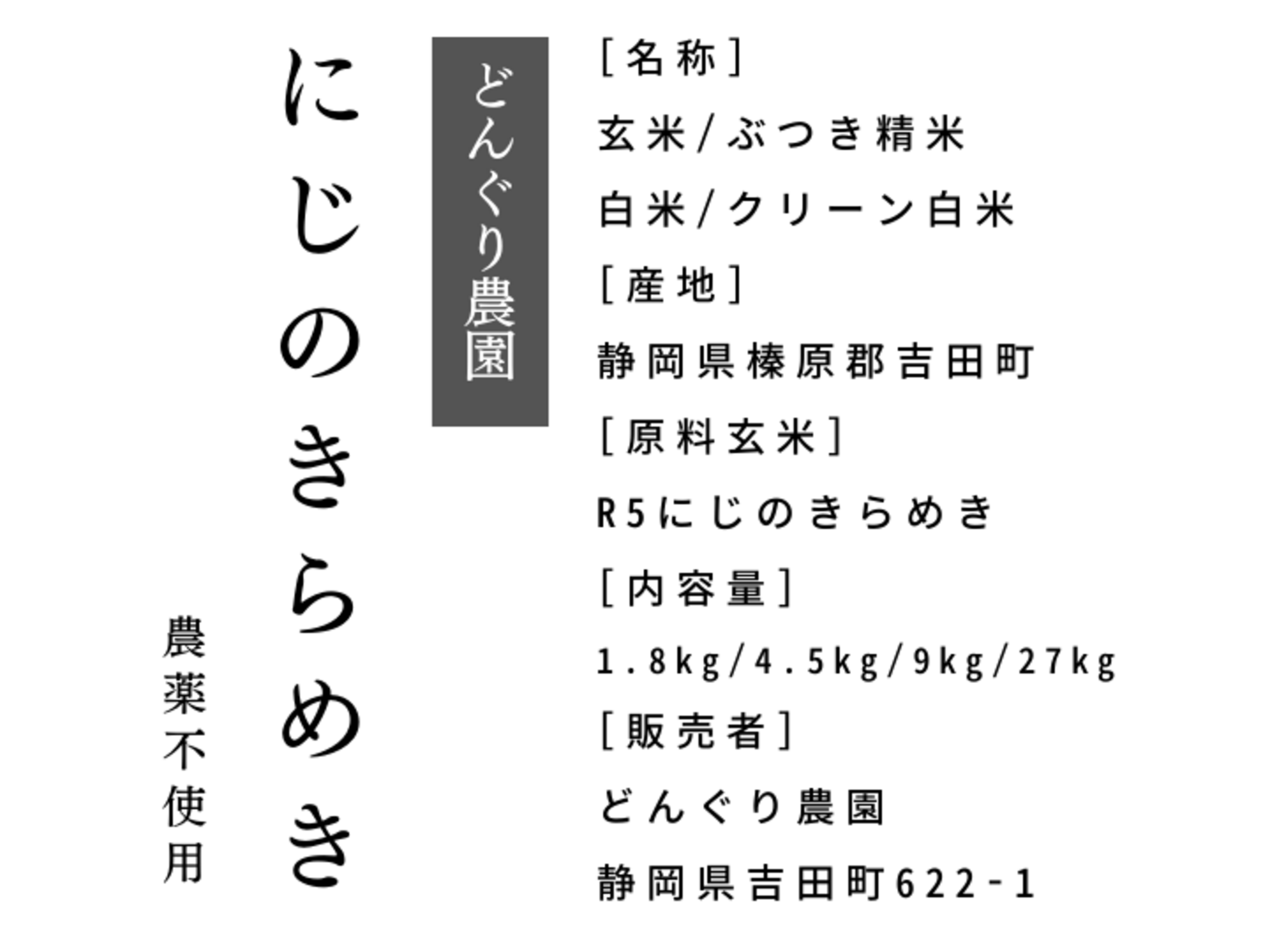 [品種]にじのきらめき [重量] 9kg(※1) [精米]精米