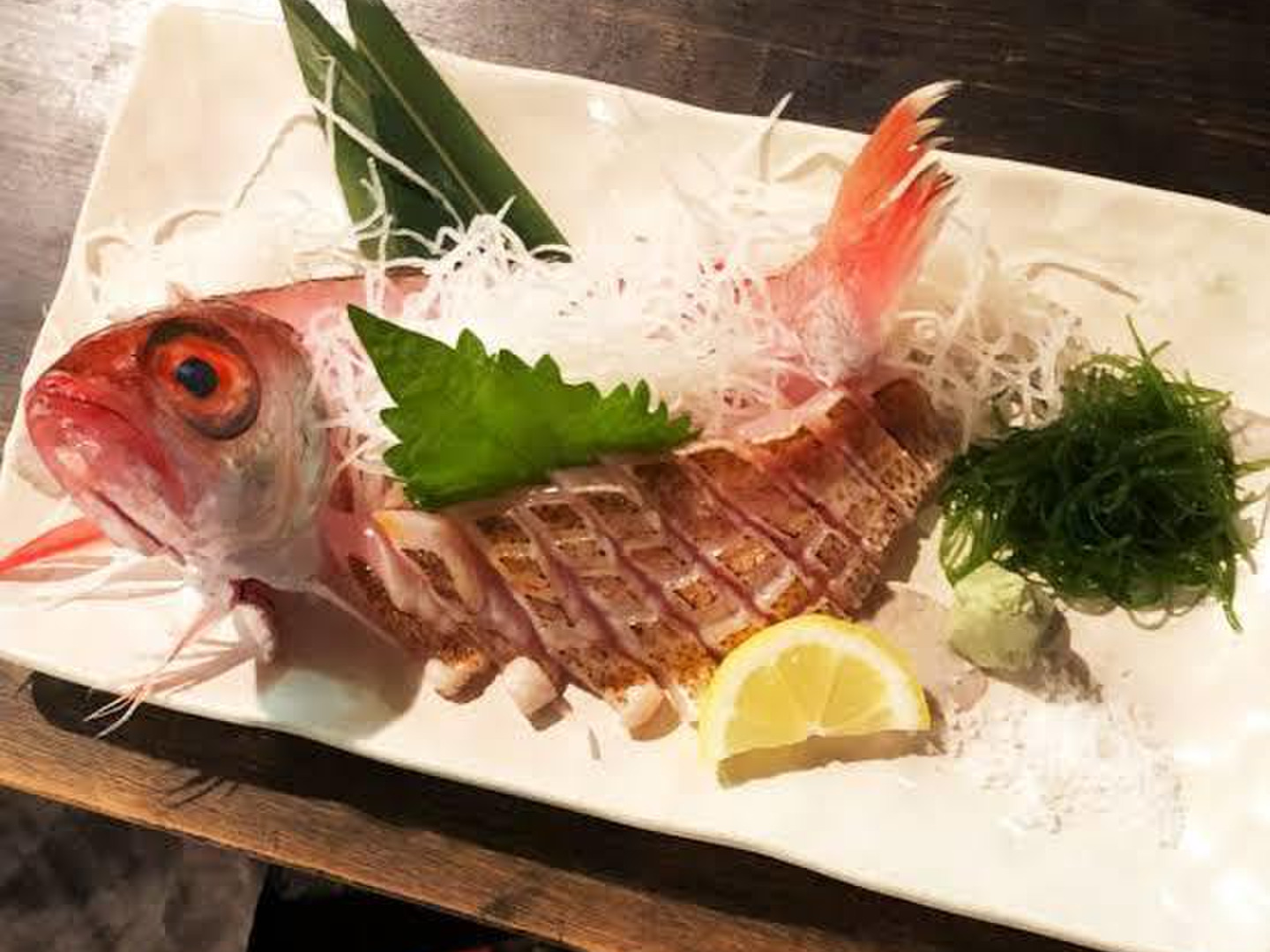 刺身 まずは何といっても刺身です。 白濁とした身には、甘い脂がぎっしり。 皮にも旨みがあるので、皮付きがおススメ。 炙り 刺身と同じくらいおススメなのが、炙りです。 のどぐろは身も大変美味ですが、皮にも旨みがあるんです。炙れば脂がじゅわっと染み出し、口どけがさらに良くなります。