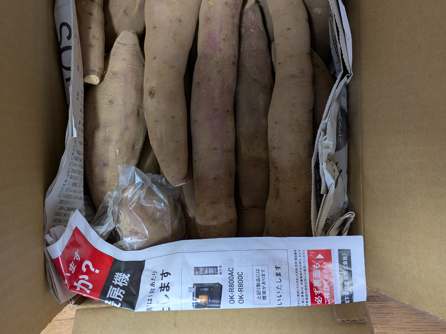 寒い地域の方は穴の開けた発泡スチロールに新聞紙に包み、芋が息のできるよう密封せず保管