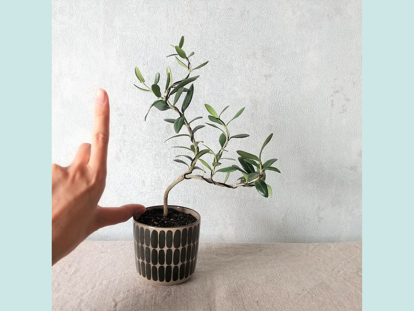 北欧の器 種から育てた南アルプスのオリーブ盆栽(PS217)