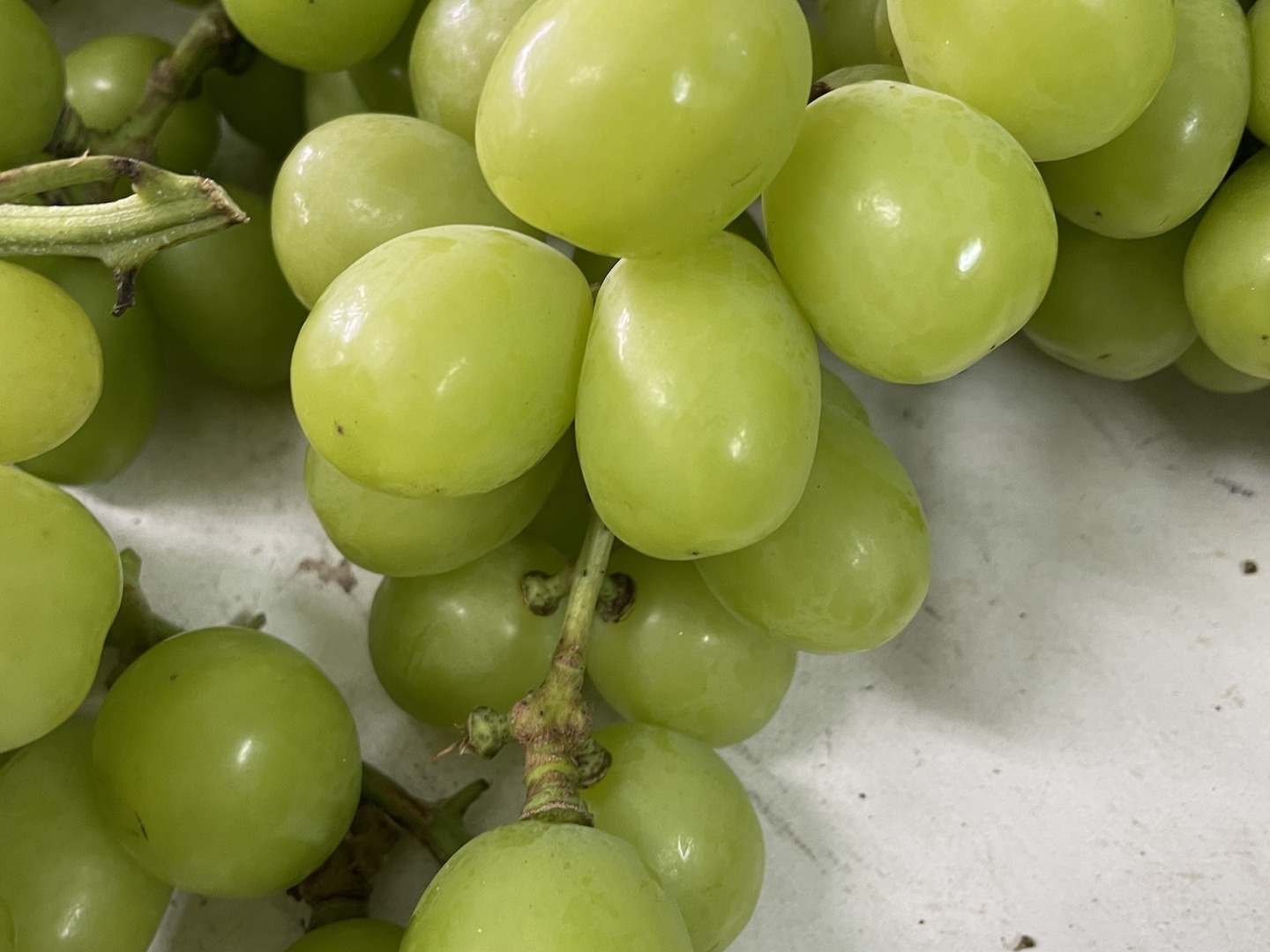 最近では「ぶどうといえばシャインマスカット」とイメージするほど人気の品種で、「これがぶどう?」と思うほどの甘さが特徴です。言い換えれば、従来のぶどうらしくない新しい味わいのぶどうです。