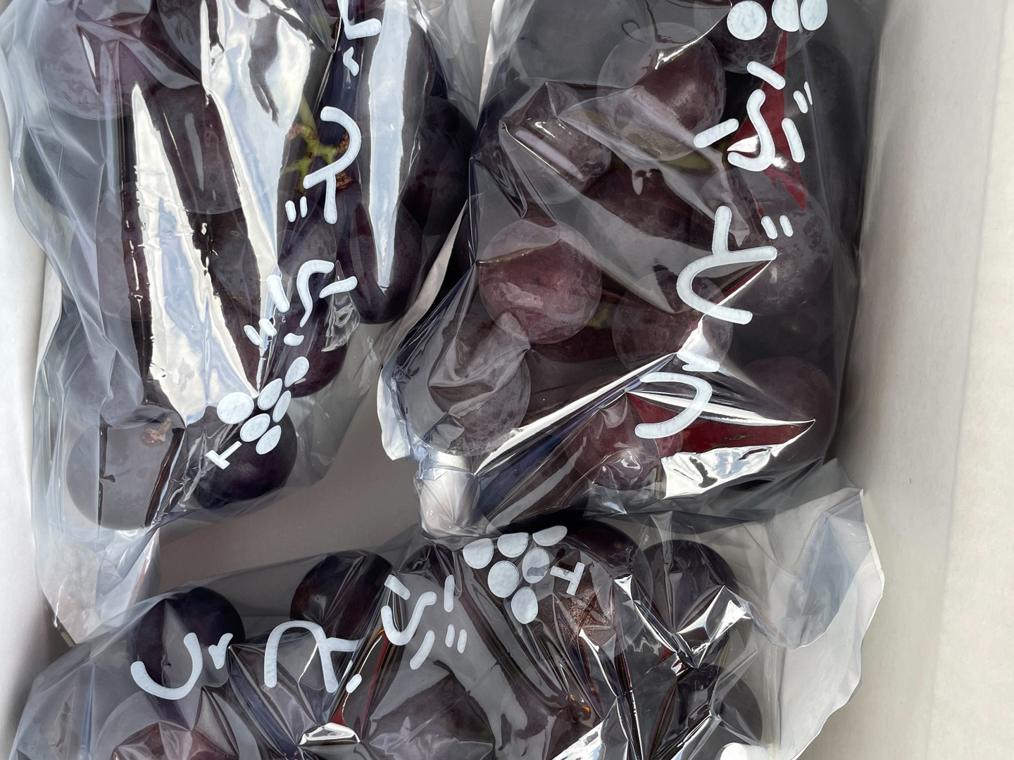 紫黒色で、粒は10~15gくらいと大きく、果肉はしまっていて汁がたっぷり。