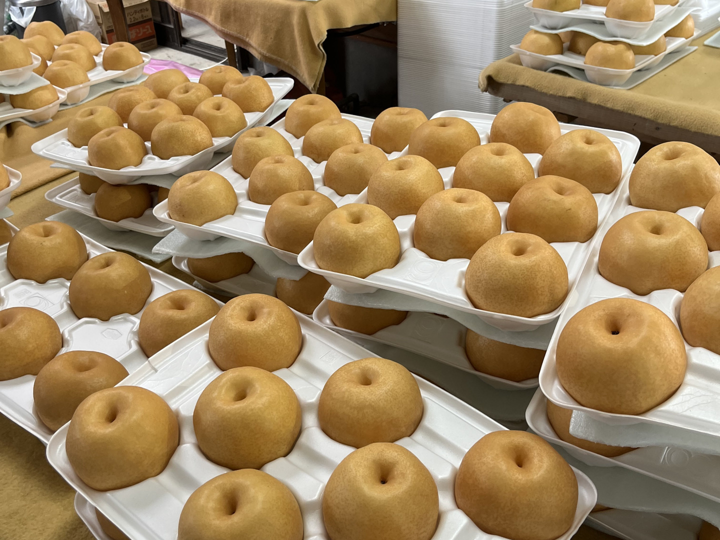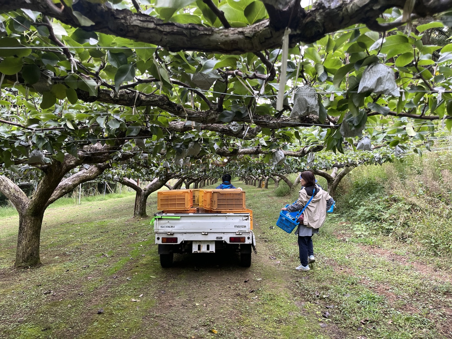 佐々木農園 大分県玖珠郡九重町 6いいね 食べチョクAWARD受賞歴 受賞回数 1回 果物 生産者のこだわり 1 ☆鮮度にこだわり!午前中収穫、当日発送☆ 2 ☆ひとつずつ丁寧に、心をこめて☆ 3 ☆試行錯誤☆ 最近のメディア実績 令和4年10月1日 TOSサタデーパレット 私たちについて私たちについて大分県 玖珠郡九重町佐々木農園大分県西部の九重町で60年続く梨専業農家で、現在3代目です。梨の生産が主ですが、広大な畑には梨のほかにも、ブルーベリーやりんごや柚子などがあります。「ひとつずつ丁寧に、心をこめて」をモットーにしています。皆さまが「美味しい!」と自然に笑顔になれるような梨、安心安全な梨づくりに取り組んでいます。私たちのこだわり☆鮮度にこだわり!午前中収穫、当日発送☆梨は品種により収穫の時期が異なります。当農園では、幸水・豊水・二十世紀・秋月・新高・甘太・愛宕といった品種を栽培しています。それらの品種の一番美味しく熟した時期を見極め、その日の朝から収穫します。午後からはひとつずつ手作業で選果します。梨は大変デリケートな果物です。少しでも荒く扱うとすぐにそこから傷んでくるため、やさしく丁寧に箱詰めしたら、その日のうちに発送しています。採れたてのフレッシュであふれる果汁をお楽しみください☆3いいね!いいね!☆ひとつずつ丁寧に、心をこめて☆■春•••梨の花は白くて桜と同じ頃に咲きます。開花すると、手作業でひとつひとつの花に花粉を付けていきます。花粉の準備に1日以上かかり、気温が低いと受粉しないなどの条件があるため、この時期は毎日天気予報とにらめっこです。■夏•••無事に着果したら、今度は摘果(良い実を選別し不要な実を間引く)をします。そしてその実に一枚ずつ袋を掛けていきます。その合間には、熱中症に気をつけながら草刈りや防除作業を行います。■冬•••ここ九重町はスキー場がある程、九州でも寒く雪の積もる地域です。長い長い冬の間は、ひたすら剪定です。数年で枝を入れ替えるため、一本ずつの枝を剪定し棚に結びつけ、良い実をつける枝を残していきます。一年を通してたくさんの仕事があり、一年かけて大事に大事に育てています。手をかけ、手をかけ過ぎず。梨の木が本来持つ生命力に任せています。(人手が足りず、手が回らないというのが実情ですが…)3いいね!いいね!☆試行錯誤☆変化し続ける気候や園地の状態に合った梨を作りたいと考えています。長年頑張ってきてくれた木を植え替えるタイミングで、「甘太(かんた)」などの新しい品種を増やしています。新しく植えても、肥料や水の具合で枯らしてしまったりと試行錯誤の毎日です。これまで梨一筋でやってきましたが、最近はブルーベリーやりんごやぶどうなどの果樹も少しずつ増やしています。まだ収穫量が少ないので、道の駅などに少量を出荷するだけですが、ゆくゆくはネットなど販路を拡げていきたいです。また、園地を荒らすイノシシ・鹿や、掛けた袋を片っ端からつついて落とすカラスから梨を守るために、狩猟免許を取得しました。さらに、広い園地の見回りやカラス対策としてドローンも導入しました。日の出とともにカラスを追いかけて技術を磨いています。美味しい梨を皆さまにお届けできるよう、新しくて良いものはどんどん取り入れていこうと考えています。0いいね!いいね! ログイン後にフォローできます