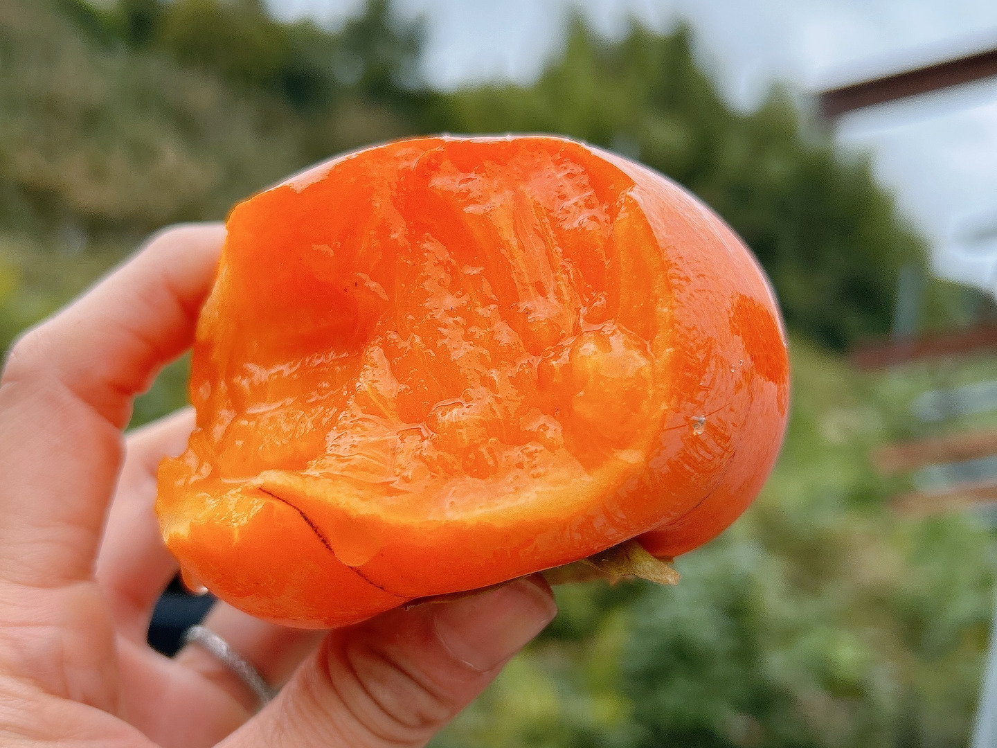 柔らかくなってしまった柿は、冷凍してシャーベットみたいにお召し上がりいただいても美味しいです♪