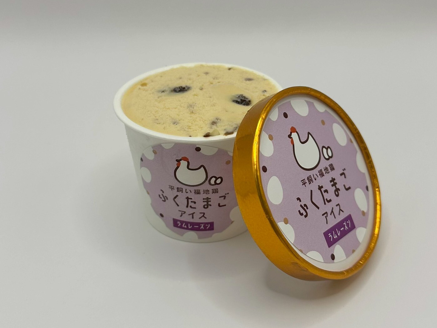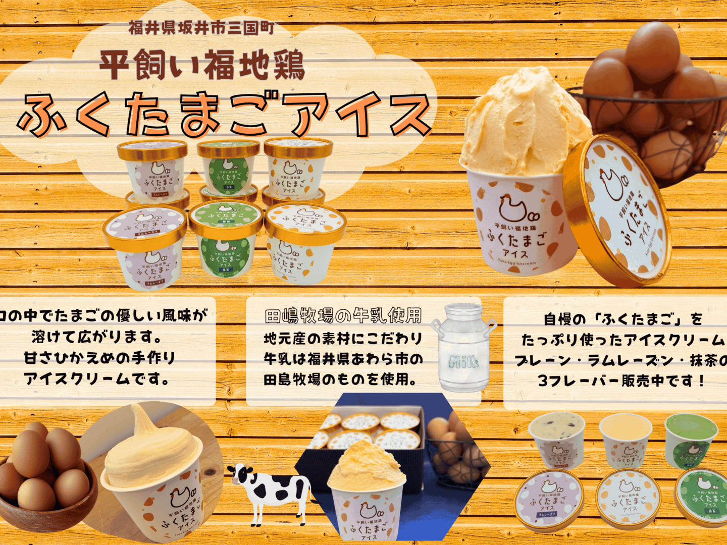 そこで採れたふくたまごと、地元あわら市の田嶋牧場の牛乳を使用した地産地消アイスです。