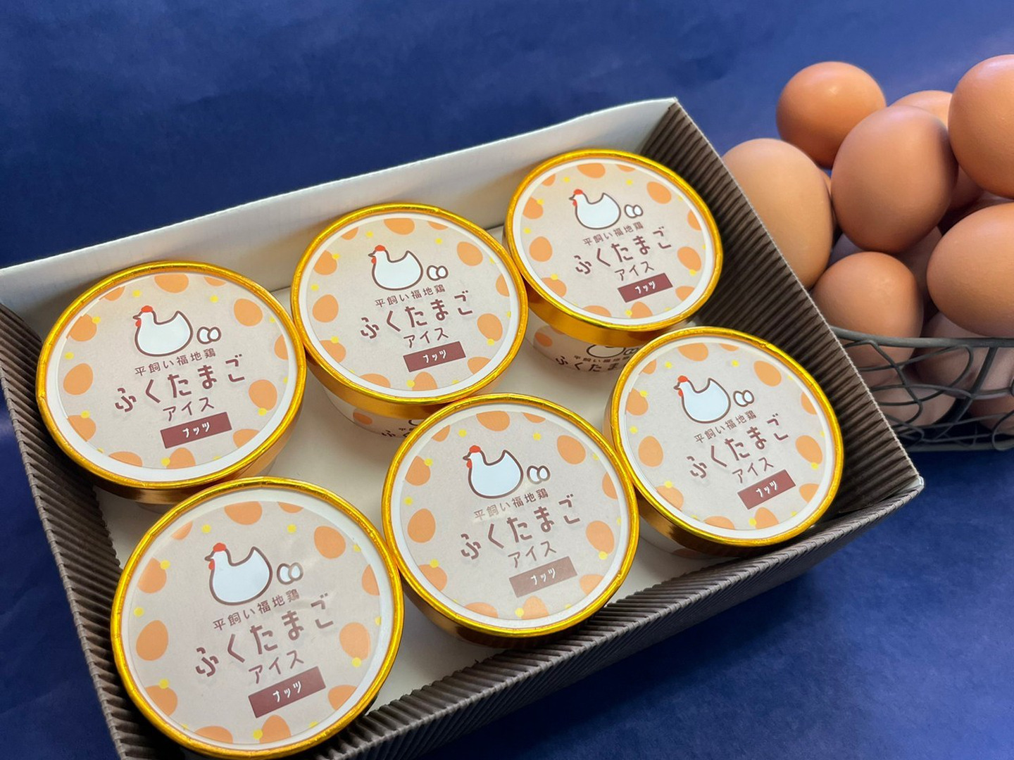 そこで採れたふくたまごと、地元あわら市の田嶋牧場の牛乳を使用した地産地消アイスです。