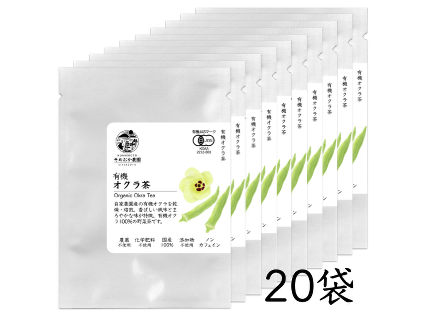 自家農園産の有機オクラを乾燥・焙煎。香ばしい風味とまろやかな味が特徴。有機オクラ100%の野菜茶です。