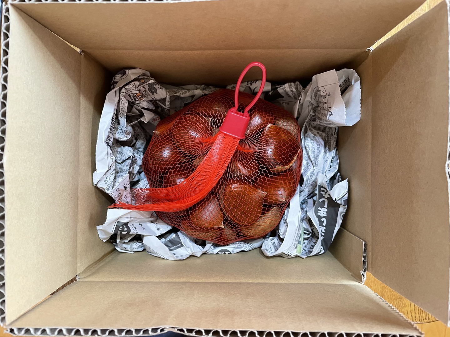 1.1kgを栗ネットに入れて60サイズのダンボールで梱包します。