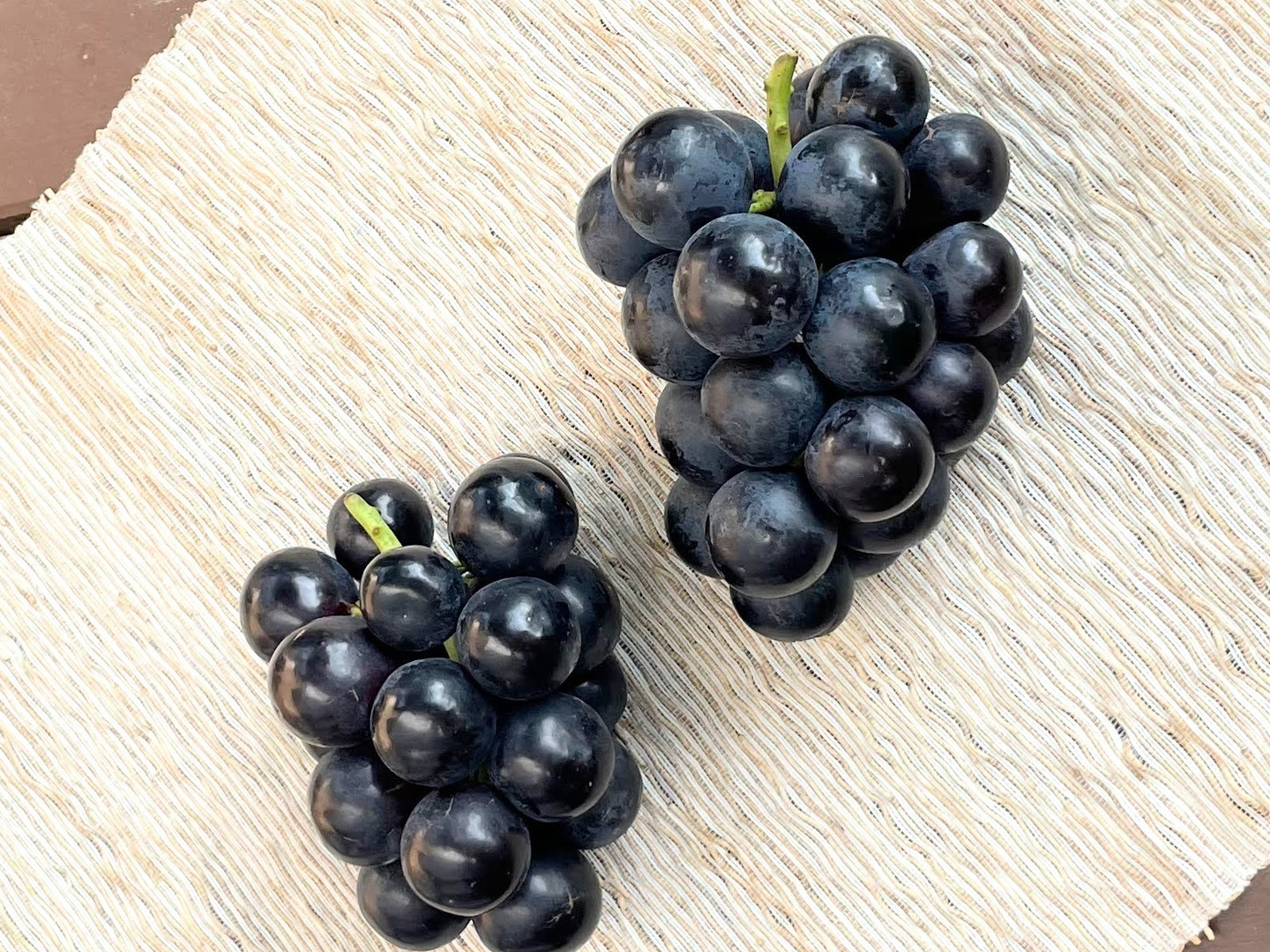 ナガノパープルは、甘さが爽やかでコクがある黒ぶどうです。どちらも皮ごと食べられます。