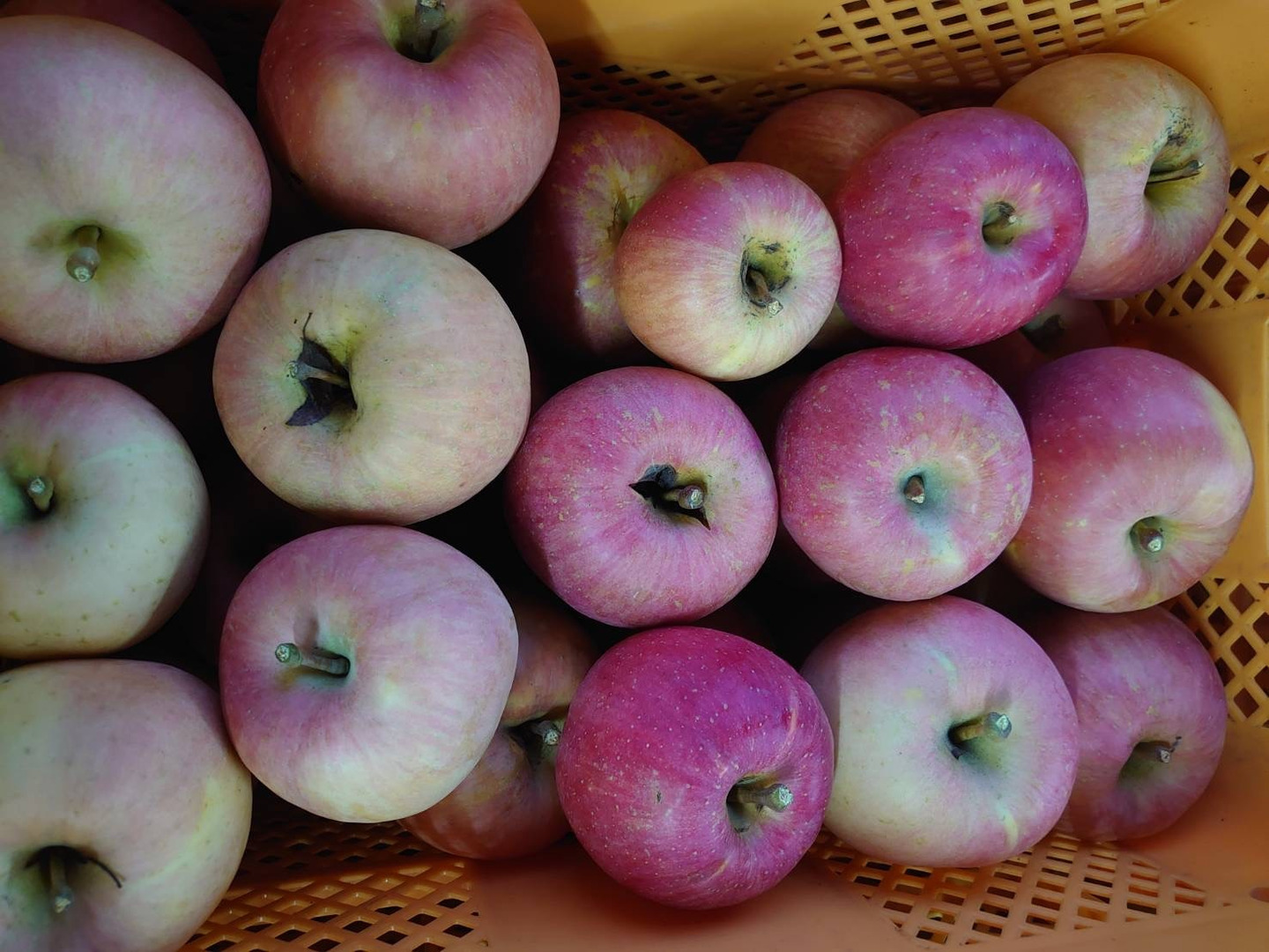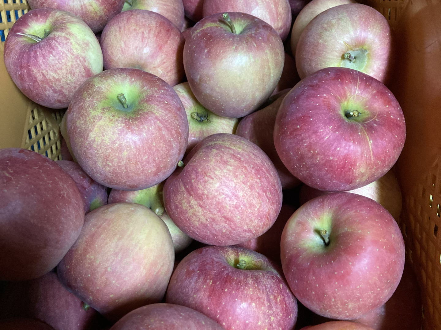 キズやスレ、軸割れ、色むら、大きさバラバラ、少し軟化し始めたりですが、めっちゃ美味いりんごです。