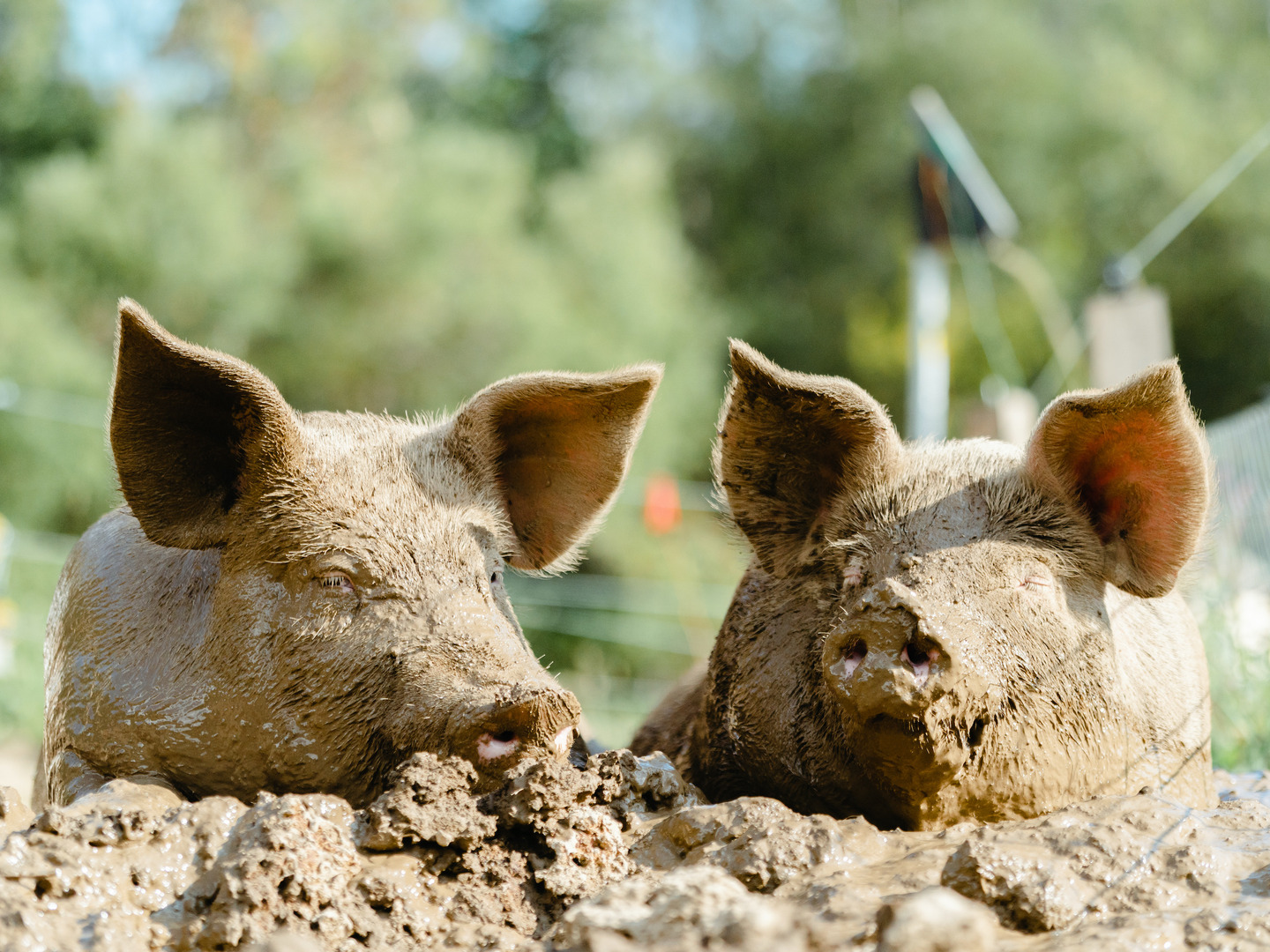 山の斜面に位置する炭豚ファームは、山を登ったり降りたり、森林の中を冒険しております。