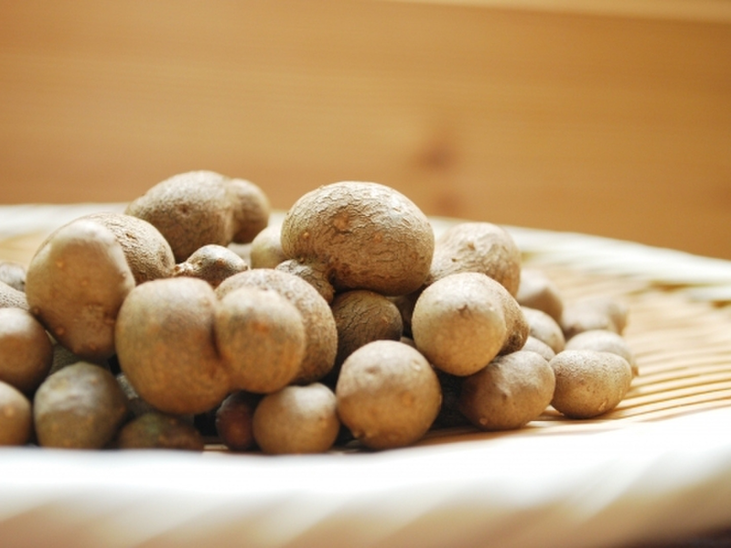 むかごはそのままにしておくと、すぐに乾燥してしわしわになります。むかごがお手元に届きましたら、水洗いして水分をしっかり拭き取り、キッチンペーパーに包んでジップロックに入れて冷蔵庫で保管します。10日程度は可能です。