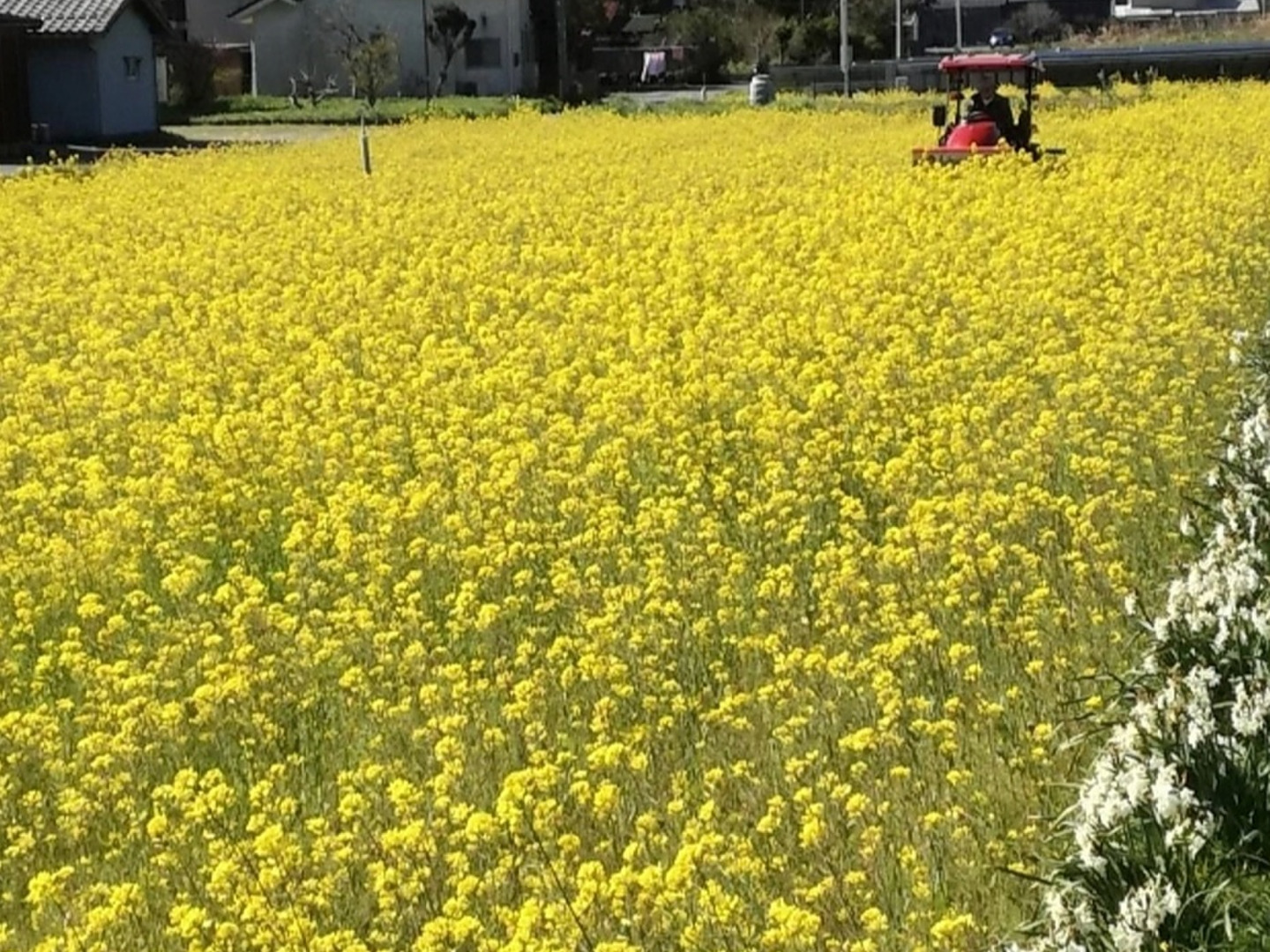 早春に、辺り一面満開となった菜の花の景観をたっぷり楽しんだ後に、土の中に鋤込んで緑肥という肥料にします。