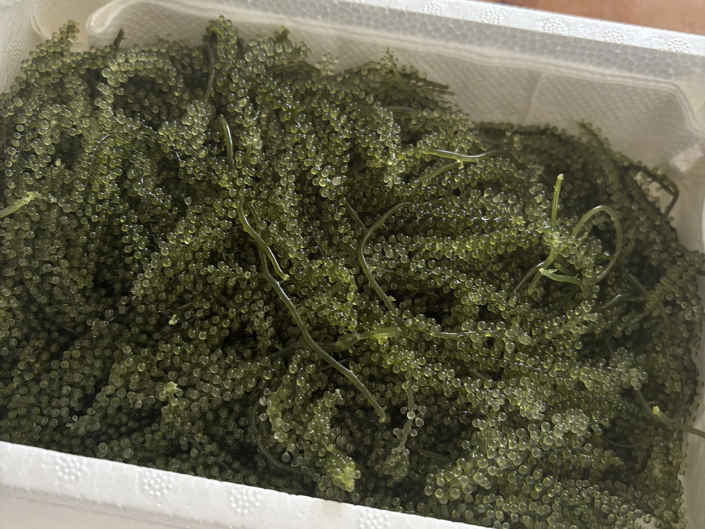海ぶどうの緑色が薄くなった場合は、フタ付きの透明な容器に入れ、蛍光灯など弱い光を当てると2時間程で戻ります。