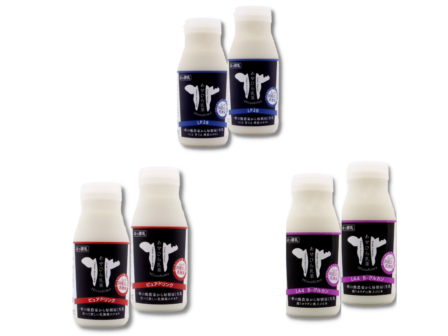味 ピュアドリンク:自然な甘み、LP28:フルーティーな味わい、LA4 :高粘度で濃厚