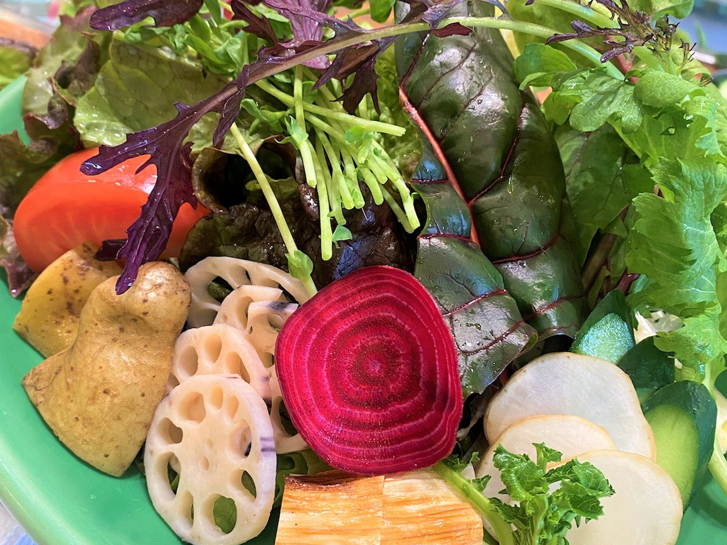 ・かぼちゃ 1/4カット ・にんじん 2本 ・ベビーリーフ 50g ・あやめ雪かぶ 1玉 ・白かぶ 1玉 ・春菊 100g ・水菜 100g ・白ネギ 1本