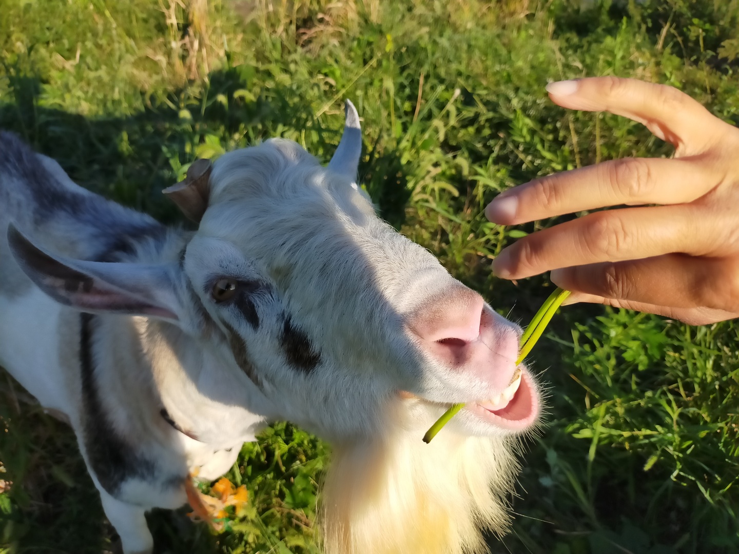 ヤギはうちの野菜が大好きです。(ヤギはグルメです)