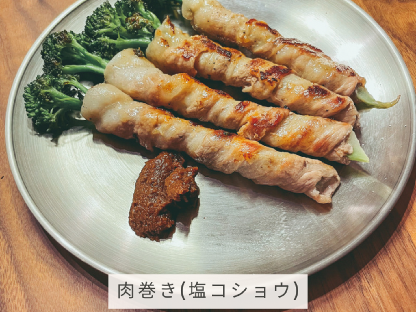・肉巻き(タレでも塩胡椒で焼いて味噌をつけても◎)