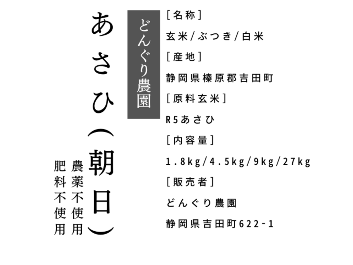 [品種]あさひ(朝日) [重量] 4.5kg(※1) [精米]ぶつき