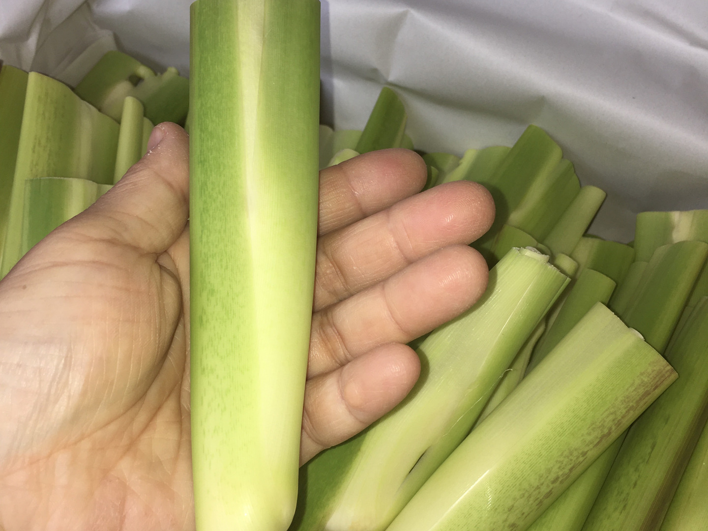 小さいがために、葉っぱをむく手間が少し増えますが、みずみずしさで言えば、なぜか”ちっちゃい”方が断然おいしい(と感じる)まこもたけ。