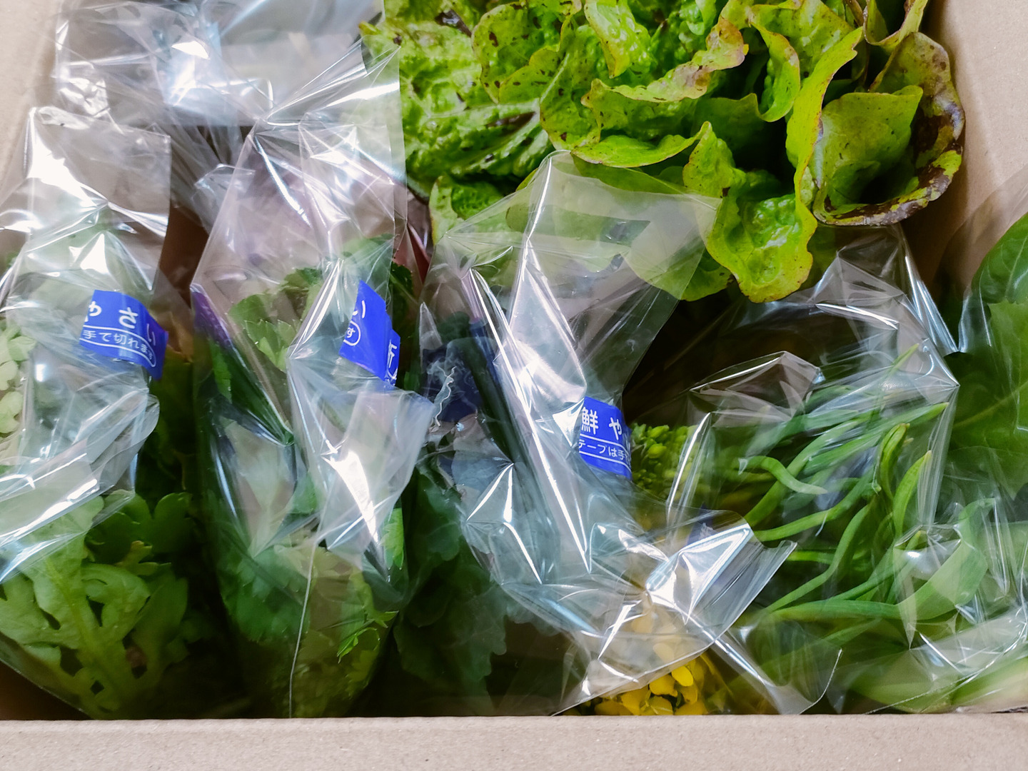商品について あわせ買い対象 同生産者の別の「あわせ買い対象」商品と一緒にご注文いただくと、送料をまとめてお届けできる場合があります。 生産者からのお知らせ 近年問題となっている、流通のパンクにより、予定日に届かないというような事態もあるかもしれません。どうか広い心で対応していただけたらと思います。その2 天候不順が発送前日から発送日に及ぶ場合、発送日の変更をお願いする場合があります。(特に梅雨時期) もっと見る 内容 80サイズの段ボールに10袋程度詰めて発送いたします。 規格外 大きさ無選別 見た目が悪い(表面上、変形など) 発送 ヤマト運輸(食べチョク特別送料) 送料 ¥ 常温便 + ¥ 0 数量1点ごとに送料が発生します。 種別 野菜セット 産地 愛知県 農薬化学肥料不使用 野菜セット 家庭用 動物性堆肥不使用 ビニール包装 紙包装 愛知県x野菜セット 規格外 大きさ無選別 小さいものも入ります 見た目が悪い(表面上、変形など) 白菜の方に少々虫食いがあるかもしれません。 もっと見る 商品説明 注白菜などの重量系野菜は、このサイズの箱からになります。リューネファームの野菜は、肥料などを投入せずに、自然の力のみで栽培しているため、少々小さい場合があります。<栽培のこだわり>お客様に美味しいと思っていただけるよう、鹿児島から取り寄せた、乳酸菌、微生物、ミネラル豊富な竹を使用しております。また、動物性堆肥は使用しておりません。根粒菌や菌根菌、酵母菌、乳酸菌などの微生物の力を活用しております。植物が出すホルモンの活性化などの手段もとっております。注)スイスチャードは、色合い重視のため、株ごとでは無く、葉を複数枚詰めます。秋冬野菜内訳ミニトマトナスピーマン秋ズッキーニの花とうもろこし(大和ルージュ、他1種)水前寺菜(霜で枯れるまで) 9本入り空芯菜 12本入りさつまいもリーフレタスさつまいもパセリ黒キャベツミニ白菜アスパラ菜(オータムポエム) 水菜かつお菜わさび菜カブ(もものすけ、ラティーノ)水菜(緑、赤軸)つるむらさきミニ大根ベビーリーフ 詰め合わせ9月から2月までの野菜空芯菜、イタリアンパセリ、茎ブロッコリー(緑、紫)、茎カリフラワー、子宝菜(高菜(10月〜)子(12月〜))リーフレタス、セロリ、水菜(緑、赤軸)、カブ(もものすけ、ラティーナ)、黒キャベツ、ネギ、ミニ白菜、かつお菜、春菊、さつまいも、ミニ大根、人参、わさび菜、つるむらさき珍しい野菜の食べ方は、ご注文いただいた時にお伝えするか、紙に書いて一緒に入れます。内容に不備などがございましたら、返金または再送の対応をさせていただきます。ご注文やコメントに対し、迅速に対応いたします。 もっと見る この商品のことをお友達にもシェアしませんか ポスト シェア