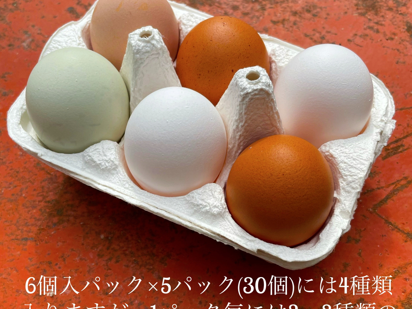 白卵に薄緑のアローカナ、さくら色の名古屋コーチンに褐色のもみじのタマゴの4種類がランダムミックスになったお楽しみパックです(^^♪
